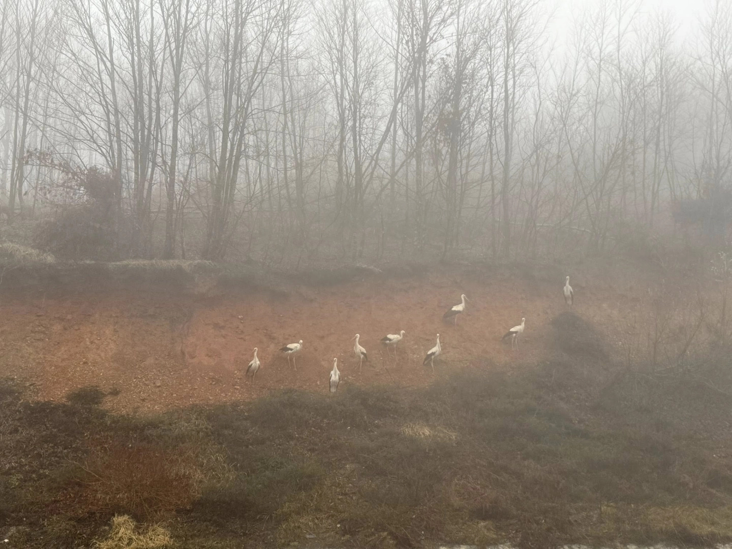 Göç yolundaki leylekler, yoğun sis nedeniyle Kırklareli'nde kara yolu kenarına indi