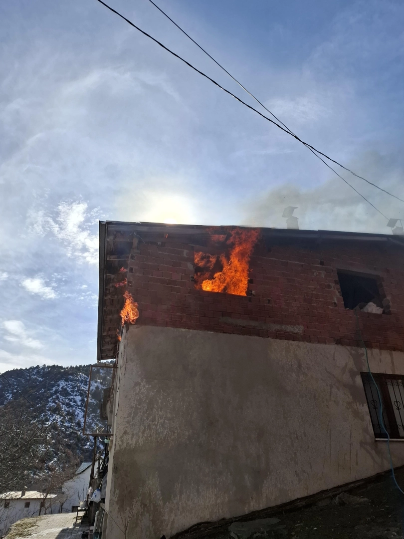 Selda FIRAT/ GÜMÜŞHANE, (DHA)- GÜMÜŞHANE'de Ayten Yiğit’in bahçesindeki otları temizlemek için yaktığı ateş, 2 eve sıçradı. Yangın, itfaiye ekiplerince söndürüldü.Yangın, öğleden sonra Mescitlik köyü Cami Önü Mahallesi’nde Ayten Yiğit’e ait müstakil evde meydana geldi. Yiğit, bahar temizliği için bahçesindeki otları yakarken, alevler bir anda büyüyüp evini sardı. Alevler rüzgarın da etkisiyle bitişiğindeki bir başka evin çatısına da sıçradı. Çevredekilerin ihbarı üzerine olay yerine jandarma, sağlık ve itfaiye ekipleri sevk edildi. İtfaiye ekiplerinin müdahalesiyle söndürülen yangında yaralanan olmazken, 2 evde hasar oluştu. (DHA)