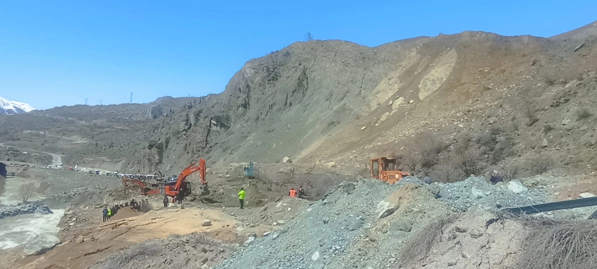 Yaşar KAPLAN/HAKKARİ, (DHA)- HAKKARİ-Van kara yolunda, 6 gün önce meydana gelen heyelan nedeniyle zarar gören yolda çalışmalar devam ederken, ulaşım ise kontrollü olarak sağlanıyor.