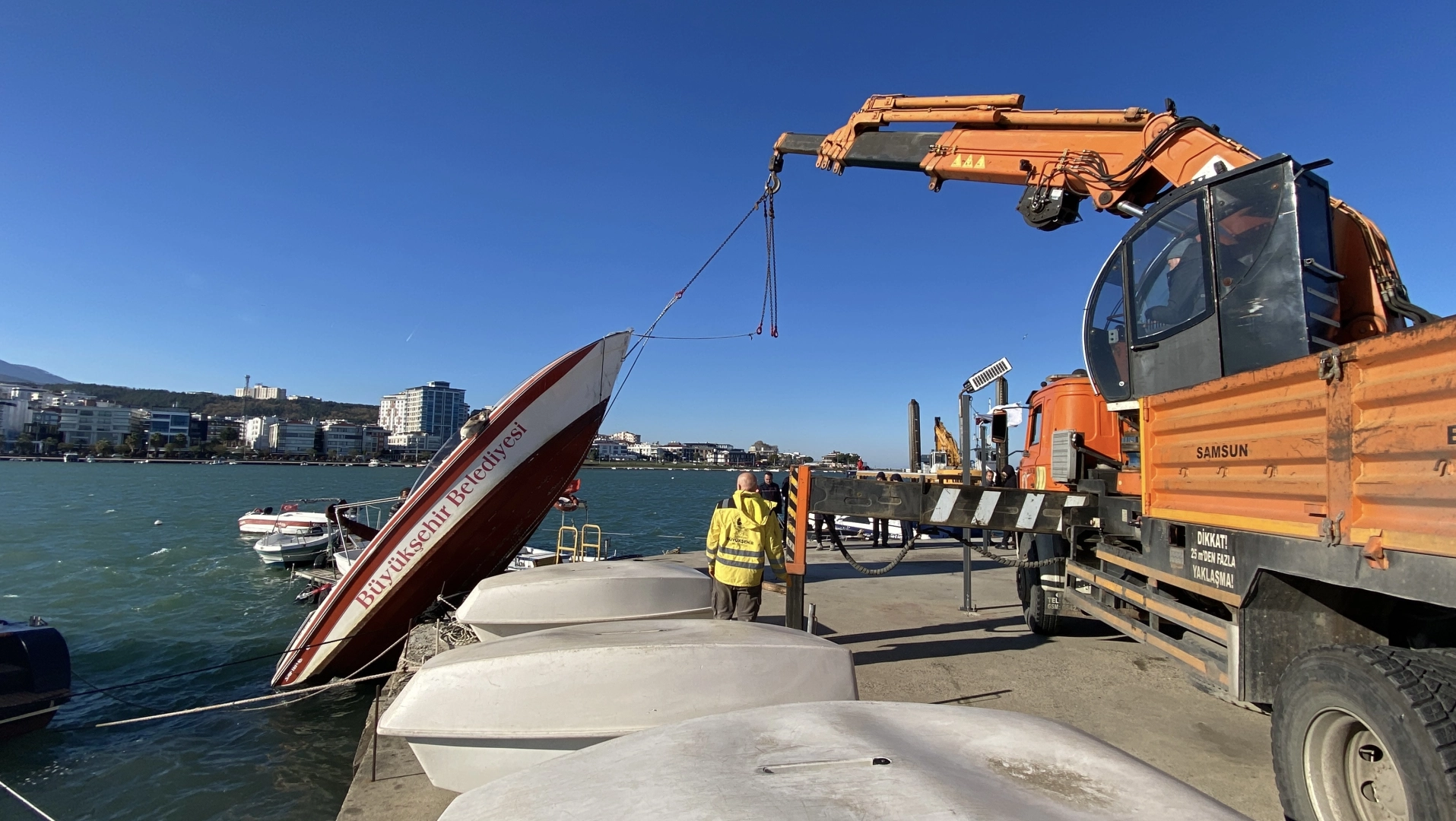 Olay, saat 13.30 sıralarında Atakum ilçesi Körfez Mahallesi Adnan Menderes Bulvarı'ndaki marinada meydana geldi. Samsun Büyükşehir Belediyesi'ne ait tekne, rüzgar nedeniyle alabora oldu. Çevredekilerin ihbarıyla bölgeye belediyeye bağlı itfaiye ve vinç sevk edildi. Batan tekne ekipler tarafından halat ile vince bağlandı. Tekne, çıkarıldığı sırada bağlı olduğu halatın kopması sonucu yeniden denize düştü. O anlar, cep telefonuyla kaydedildi. Ekiplerin çalışmasıyla batan tekne çıkarıldı. (DHA)