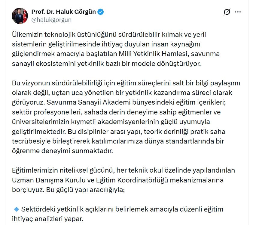 Haluk Görgün'den 'Savunma Sanayii Akademi' paylaşımı