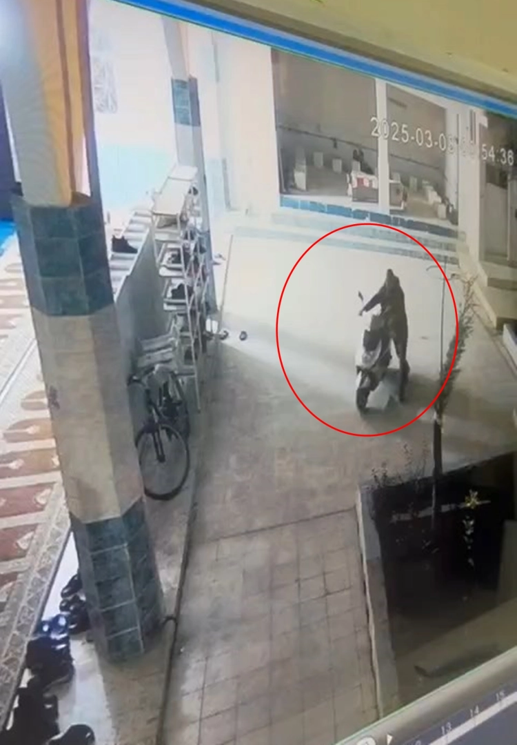 Ahmet AKKUŞ/NUSAYBİN (Mardin),(DHA)-MARDİN'de imama ait motosiklet, cami avlusundan çalındı. O anlar, güvenlik kamerasına yansıdı. Olay, dün akşam saatlerinde Nusaybin ilçesi Kışla Mahallesi Midyat Caddesi Kışla Camisi'nde meydana geldi. İmama ait motosiklet, caminin avlusundan çalındı. O anlar, güvenlik kamerasına yansıdı. Görüntülerde; şüphelinin etrafı kontrol ettiği, ardından motosikleti avludan çıkardığı görüldü. Durumu fark eden imam ihbarda bulunurken, şüpheliyi yakalamak için çalışma başlattı.(DHA)