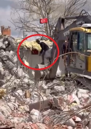 Ahmet KORKMAZER/NEVŞEHİR, (DHA)- NEVŞEHİR’in Derinkuyu ilçesinde eski okul binasının yıkımı sırasında Ali İhsan Bellikli, duvarda asılı olan Türk bayrağını görüp, kullandığı iş makinesini durdurdu. Bellikli, bayrağı alıp çalışmalarına devam ederken, o anlar cep telefonuyla görüntülendi.