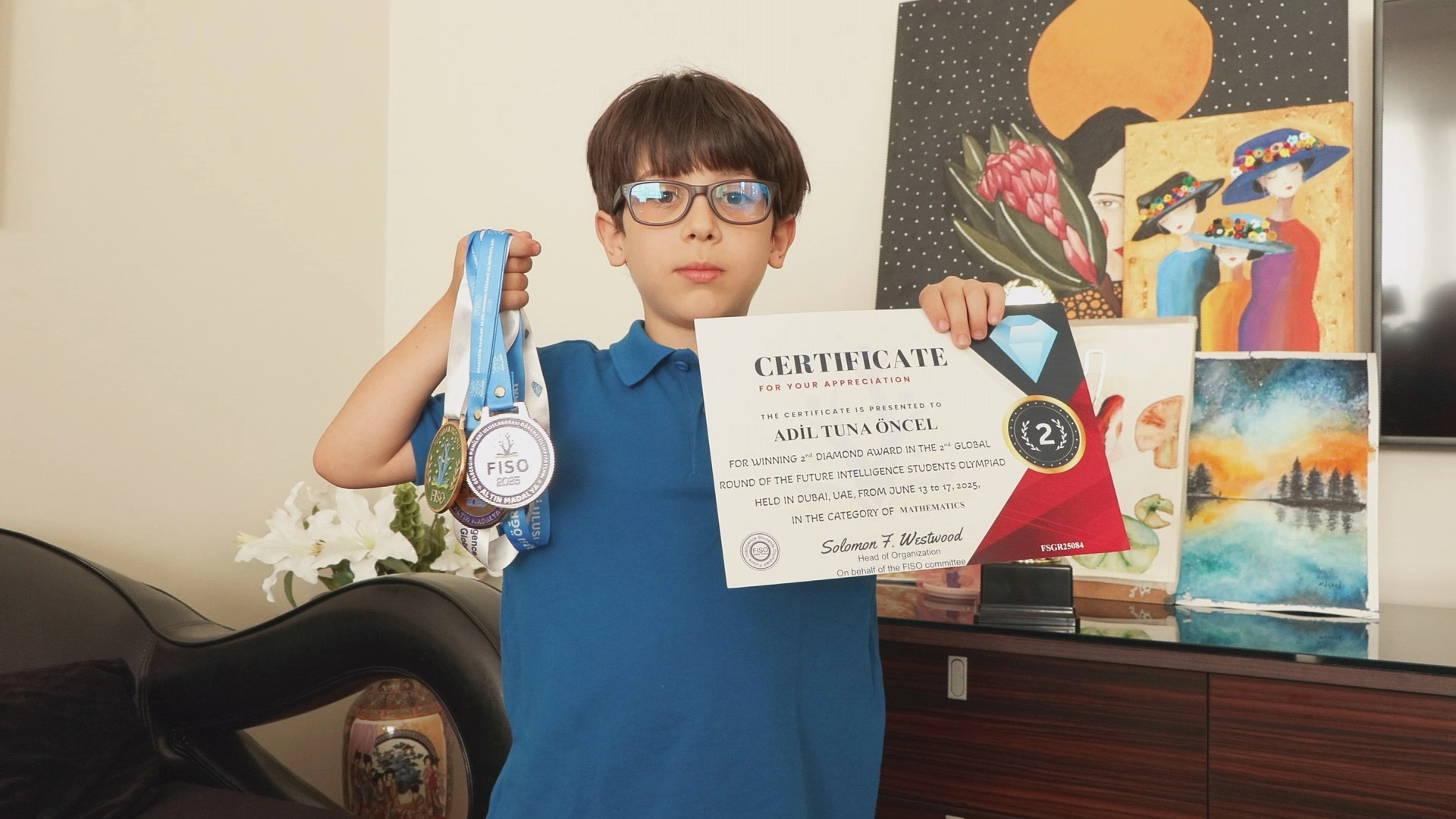 Tuğçe SEZER ODABAŞI-Fırat ALKIZ/İSTANBUL,(DHA)- İSTANBUL'da yaşayan Adil Tuna Öncel (7), ikinci sınıflar kategorisinde yaklaşık 700 kişiyi geride bırakarak Dubai’de düzenlenen 'Geleceğin Dahileri Öğrenci Olimpiyatları'na (FISO) katılmaya hak kazandı. Yarışmanın 6 aylık periyotta gerçekleşen 3 aşamasını da tamamlayıp tüm sorulara doğru cevap veren Öncel, Diamond (Elmas) madalya kazanarak Türk bayrağını Dubai'de başarıyla dalgalandırdı. Henüz 2 yaşındayken okumaya başlayan, ailesi tarafından erken yaştan itibaren sayıları ilgisi fark edilen Öncel, periyodik cetveli, ülke bayraklarını ve İstiklal Marşı’nın 10 kıtasını ezbere biliyor. Ailesinin matematikle oyun oynar gibi bağ kurduğunu söylediği Adil Tuna Öncel, "Ben zaten 9 ay önceden kazanacağımdan emindim ve kazandım. Büyüyünce bilim insanı olacağım" diye konuştu. Adil Tuna Öncel, henüz 2 yaşındayken okumayı öğrendi. 3 yaşındayken 6 yaşında çocuğun zekasına sahip olduğu belirlenen Öncel, 5.5 yaşında ilkokul 2’nci sınıfa geçiş yaptı. 7 yaşında Dubai’de düzenlenen 'Geleceğin Dahileri Öğrenci Olimpiyatları' nda (FISO) matematikte dünya şampiyonu oldu. Öncel, 700’e yakın öğrenciyi geride bırakarak katılmya hak kazandığı yarışmada tüm soruları doğru yanıtladı. Elmas madalyanın sahibi olan Öncel, yaşça büyük rakiplerini geride bırakarak Türk bayrağını Dubai'de gururla dalgalandırdı. Satranç oynamayı seven Öncel, ülke bayraklarını, periyodik cetveli ve İstiklal Marşı’nın 10 kıtasını ezbere biliyor. Öncel 15 yaşındaki ağabeyinin matematik derslerine eşlik etmeyi de seviyor. 'RAKİPLERİ EN AZ 1,5 - 2 YAŞ BÜYÜKTÜ'Üç aşamadan oluşan yarışmayı ve yaşadıkları heyecanı anlatan baba Uğur Öncel, "İlk aşama 2024 yılı Aralık ayında oldu. O yarışmada Türkiye 1’incisi oldu. Şampiyon olanlara Dubai’deki finalde kalma hakkı veriliyordu. Ayrıca belli bir miktar para ödülü ve organizasyon tarafından indirim sağlanıyordu. Adil’in gönlü olsun diye katılsın istedik. Çünkü rakipleri en az ondan 1 yaş büyüktü. Bazıları 1,5 yaş, hatta 2 yaşa yakın büyük çocuklarla yarıştı. İlk günden kafasına koymuştu. O afişi ilk gördüğünde, 'Ben Dubai’ye gideceğim, şampiyon olacağım, bayrağımızı dalgalandıracağım, kupayla döneceğim' diyordu. İnanıyorduk ama açıkçası bu kadarını beklemiyorduk" diye konuştu. '700 YARIŞMACI ARASINDAN ŞAMPİYON OLDU' Baba Öncel, "Orada şampiyon olunca 2’nci aşamaya geçti. 2’nci aşamada bu sene Mart ayında soruları tam yaptı. Tüm sorulara doğru cevap verdi. Bu kez uluslararası bir kategoriydi. Yaklaşık 700’e yakın yarışmacı arasından şampiyon oldu. Hakikaten bizim ufkumuzu biraz daha genişletti. Dubai’ye gitmek için şöyle bir sıkıntımız vardı. Acaba gitsek mi, gitmesek mi dedik. Çünkü ekonomik olarak da biraz sıkıntı vardı. Dubai’de 1 hafta kalınacaktı. Orada tekrar yazılı test sınavı yapılacaktı. Tereddütteydik ama günün sonunda gitmeye karar verdik. Adil çok istedi. İyi ki de gitmişiz. Organizasyonun resmi kanalından soruyorlar, 'Adil ilk gün ne düşünüyorsun' diye; o da, 'Ben buraya şampiyon olmaya geldim, o kupayı alacağım' diyor. Dünya ülkelerinin, Azerbaycan gibi, Çin gibi, Vietnam gibi pek çok iddialı ülkesinden çok sayıda rakibi vardı. Adil, kendi yaş kategorisinde tek Türk’tü ve dediğim gibi en az 1 yaş küçüktü. Diğer ülkelerle birlikte çok yoğun bir katılım vardı. Adil Tuna’nın bu arada bayraklara karşı özel bir ilgisi var. Neredeyse tüm ülke bayraklarını ezbere biliyor. Kürsüye çıktıkça insanlar bayrak açıyor, Adil başlıyor, "Mozambik, Kamboçya. Yani birçoğumuzun belki ismini bile zor bildiği veya haritada zor gösterdiği yerleri sayıyor. Hem bizim kafile hem yabancılar çok şaşırmıştı. Yaklaşık 1 saat süren bir yarışmaydı; 25 soru soruldu. Sorular 2’nci sınıf ayarında fakat zorluk seviyesi yüksekti. Adil sınavdan ilk çıkan öğrenciydi ama onun soruları düzgün cevaplayıp ilk çıkan kişi olmasına açıkçası çok şaşırmadım" dedi. 'ÖNCE OLMADI SANDIK; ELMAS MADALYA GELDİ' Ödül töreninde yaşadıkları gurur ve heyecanı da dile getiren Öncel, "Önce bronz madalya, sonra gümüş madalya, sonra altın madalya takdim ediliyordu. Bronzda Adil çıkmadı, gümüşte de çıkmadı. 'Tamam altın madalyayı aldı' dedik. Fakat bu sırada altın madalyada da Adil’in adı okunmadı. Biz de 'Herhalde olmadı' dedik. Adil’e soruyorum, 'Bir yanlışlık vardır olması lazım' diyor. Biz de onu teselli etmeye çalışıyoruz. Meğerse diamond (elmas) madalya varmış. Tabii o bekleyiş anı, oradaki heyecan gerçekten anlatılamaz bir duyguydu. Çok farklı ülkelerin bayrakları dalgalandı ama en sonunda Türk bayrağını en yukarıda, en layık olduğu yerde dalgalandırdı. Orada Adil tezahüratlarını, Türkiye sloganlarını duymak, gerçekten tüylerimizi diken diken etti. Çok mutlu olduk. Bunun yanında maddi bazı ödüller de verdiler. Bir telefon hediye ettiler; ama inanın, o aldığı ödül değil; orada Türk bayrağının en yukarıda oluşu paha biçilemez bir duyguymuş." dedi. Baba Öncel, "Adil’in matematiğe ve fen bilimlerine ilgisi çok yüksek düzeyde ve gerçekten üstün potansiyelli. Ancak sosyal yönü inanılmaz gelişmiş bir çocuk. İstediği yaştan insanla rahatça iletişime geçebiliyor. Kendisinden çok daha yaşça büyük insanlarla sanki arkadaşmış gibi sohbet edebiliyor. Çok disiplinli dersem yalan söylemiş olurum. Çok disiplinli bir çocuk değil ama bütün sorumluluklarını yerine getiriyor. Ödevi varsa yapıyor, çalışması gereken bir şey varsa çalışıyor." diye konuştu.'2 YIL ÜSTÜN ZEKALILAR OKULUNA GİTTİ'Anne Aslıhan Öncel Adil’in henüz 2 yaşındayken 