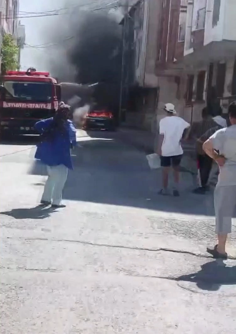 Taylan ERGÜN/ İSTANBUL, (DHA) - ARNAVUTKÖY'de park halindeki bir araçta henüz bilinmeyen bir nedenle yangın çıktı. Zaman zaman patlamaların da yaşandığı yangında alevler aracın önünde park halinde bulunduğu binaya da sıçradı. İtfaiye ekiplerinin müdahalesiyle söndürülen yangın ve yaşanan patlamalar cep telefonu kamerasıyla kaydedildi.Yangın, Arnavutköy'ün Anadolu Mahallesi Sumak Sokak'ta akşam saatlerinde çıktı. İddiaya göre, sokakta park halinde bulunan bir otomobilde henüz belirlenemeyen bir nedenle yangın çıktı. Kısa sürede büyüyen alevler aracın tamamını sararken, yangın sırasında peş peşe patlamalar da yaşandı. Bu sırada sokakta bulunan aralarında çocukların da bulunduğu mahalle sakinleri korku dolu anlar yaşadı. Patlamaların ardından alevler, aracın park halinde bulunduğu binanın dış cephesine de sıçradı.İhbar üzerine olay yerine çok sayıda itfaiye ve polis ekibi sevk edildi. İtfaiye ekipleri demir yığınına dönen araçtaki yangını söndürdü. Ekipler binanın dış cephesini etkileyen alevlere de müdahale etti.Yangında ölen ya da yaralanan olmazken, araçta ve binada maddi hasar meydana geldi.Yangının çıkış nedeniyle ilgili inceleme başlatıldı.(DHA)