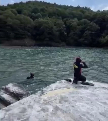 Leyla YILDIZ - Hadican EROL / İSTANBUL, (DHA)- Beykoz açıklarında alabora olan teknedeki 4 kişiden 3'ü sahil güvenlik ekiplerince kurtarılırken, akıntıya kapılan Ömer Fırtına'nın(27) cansız bedenine ulaşıldı.Olay, Beykoz Anadolu Kavağı açıklarında gece saat 01.00 sıralarında yaşandı. Tekne alabora oldu bilgisi üzerine bölgeye Sahil Güvenlik Komutanlığı ekipleri sevk edildi. Sahil Güvenlik ekipleri tarafından kurtarılan Seda Uktar (28), Şadiye Dokgöz (49), ve Uğur Aktürk (38) Anadolu Kavağı Deniz Komutanlığı'na götürüldü. Ekiplerin yaptığı çalışmalar sonucunda denizde kaybolan Ömer Fırtına'nın ise cansız bedenine ulaşıldı. Olayla ilgili soruşturma sürüyor.(DHA)