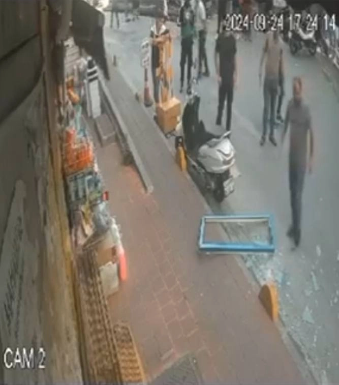 Baran AKKAYA- Emin YEŞİL / İSTANBUL, (DHA)- FATİH'te kaldırım üzerinde arkadaşları ile konuşan bir kişinin üzerine cam çerçeve düştü. O anlar güvenlik kamerasına yansıdı. Olay, 24 Eylül Salı günü saat 17.30 sıralarında Eminönü'nde bulunan bir dükkanın önünde yaşandı. Dükkanın önündeki kaldırımda duran 3 kişi sohbet ediyordu. Kaldırımın sokağa bakan tarafında duran ve arkadaşlarıyla sohbet eden adamın üzerine bir anda cam çerçeve düştü. Başına çerçeve düşen adam kaçmaya çalıştı. Çerçevenin camı ise paramparça oldu. Çerçevenin düştüğü sırada yakından geçen bir adamda kıl payı kurtuldu. Kafasına cam çerçeve düşen kişi ise şans eseri olayı ufak sıyrıklarla atlattı. Cam çerçevenin düştüğü anlar güvenlik kamerasına yansıdı. Görüntü Dökümü----------------(Güvenlik kamerası görüntüsü)-Çerçevenin düşmesi-Adamın kaçaya çalışması-Camın kırılması -Çevredekilerden görüntü