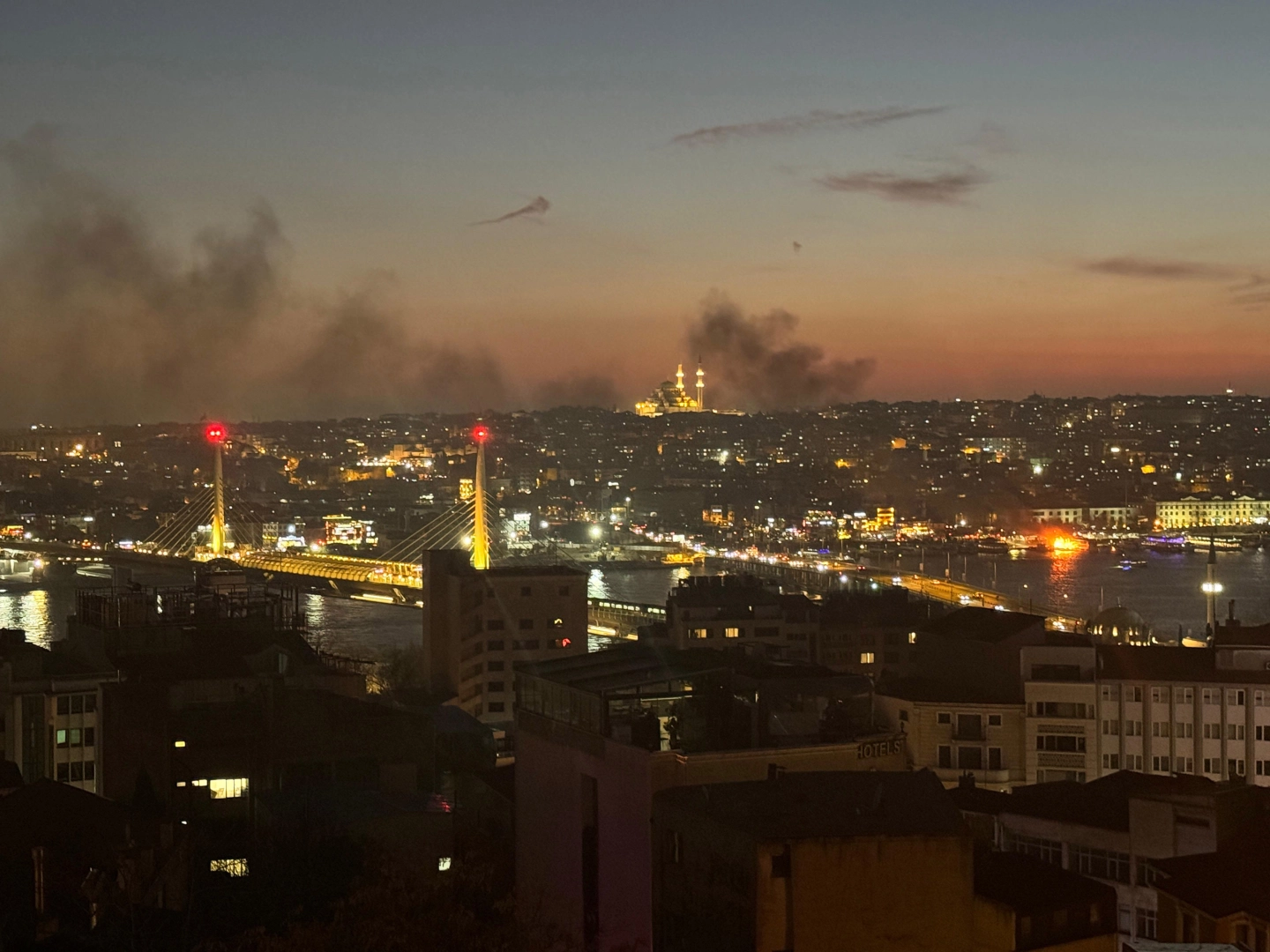 İSTANBUL, (DHA) - Haliç'te bir teknede yangın çıktı. Yangına çok sayıda itfaiye ekibi sevk edildi. (DHA)