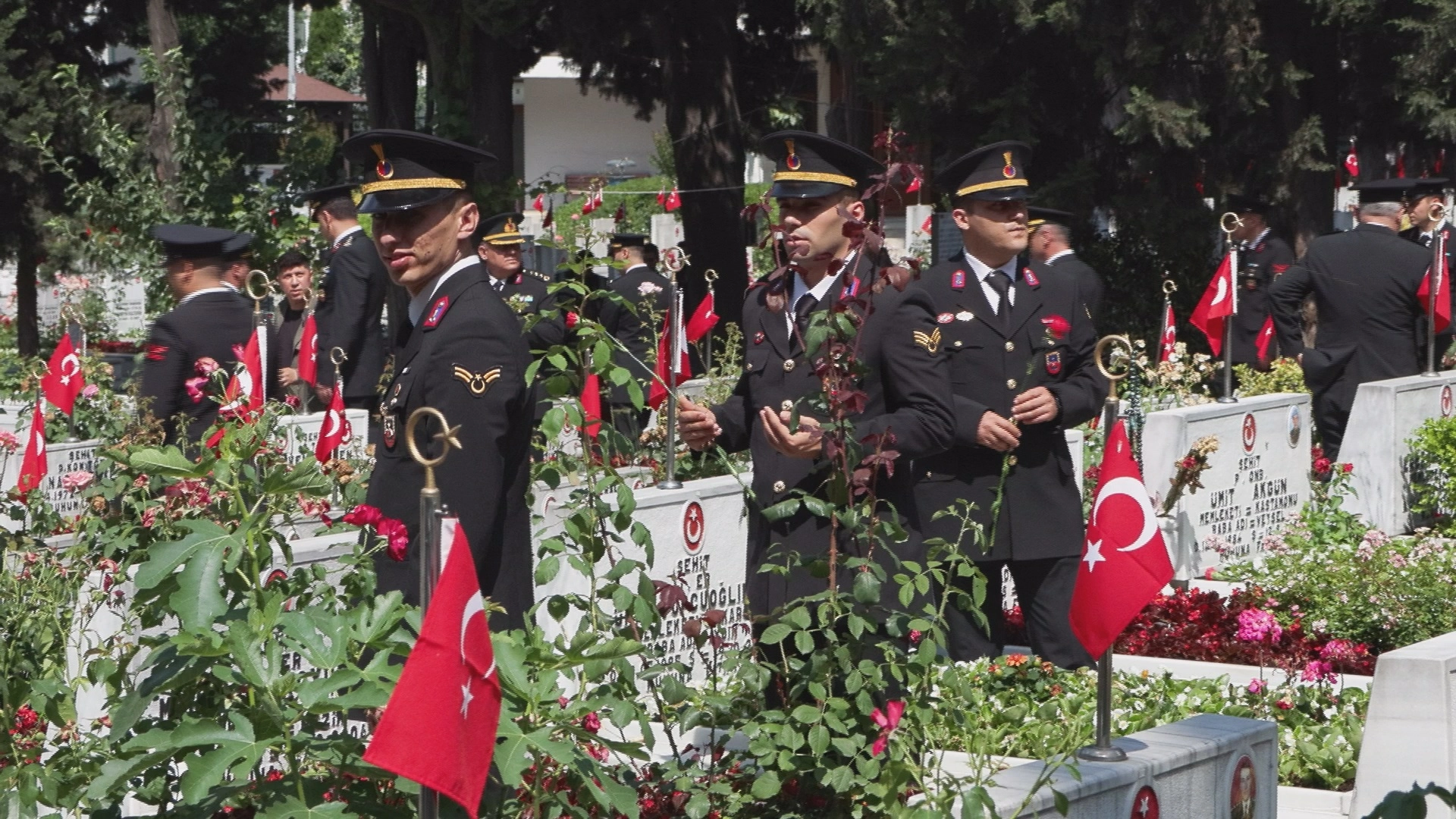 Tuğçe SEZER ODABAŞI- Ulaşcan ÖZER / İSTANBUL, (DHA)- JANDARMA Genel Komutanlığının 186'ncı kuruluş yıl dönümü dolayısıyla şehitler kabri başında anıldı. Jandarma Komutanı Tümgeneral Yusuf Kenan Topcu ve İl Jandarma Komutanlığı personeli Edirnekapı Şehitliği'ni ziyaret ederek kabirlere karanfil bıraktı.İl Jandarma Komutanı Tümgeneral Yusuf Kenan Topcu ve İl Jandarma Komutanlığı personelleri Jandarma Genel Komutanlığı'nın 186'ncı kuruluş yıl dönümü dolayısıyla sabah saatlerinde Taksim Cumhuriyet Anıtı'na çelenk bıraktı. Ardından da Edirnekapı Şehitliği'ni ziyaret ettiler. Jandarma Genel Komutanlığı'nın 186'ncı kuruluş yıl dönümü dolayısıyla Edirnekapı Şehitliği'nde anma töreni düzenlendi. Burada şehitler için Kuran-ı Kerim tilaveti okundu. Ardından Tümgeneral Yusuf Kenan Topcu mezarlıkları tek tek ziyaret ederek karanfil bıraktı.