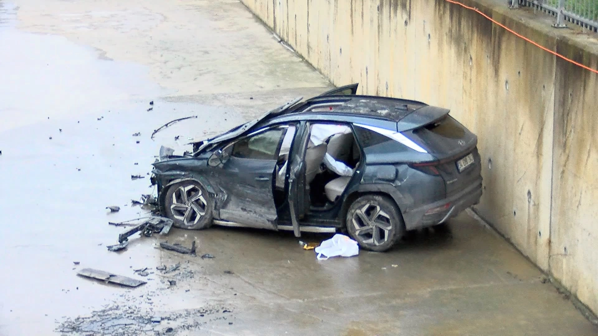 Kaza, saat 15.40 sıralarında Atakent Mahallesi Turgut Özal Bulvarı'nda meydana geldi. İddiaya göre Ö.V. idaresindeki 34 KU 9804 plakalı otomobil, seyir halideyken Garip Sokak'tan bulvara çıkan K.I.Ö'nün kullandığı 34 EMB 343 plakalı farkedeyip araca çarptı. Kazada K.I.Ö.'nün kullandığı otomobil önce elektrik panosuna ardından demir bariyerlere çarparak dereye uçtu. 34 KU 9804 plakalı otomobilin sürücüsü Ö.V. ise kaldırımdaki ağaçlara çarparak durabildi. Çevredekilerin ihbarı üzerine olay yerine itfaiye, acil sağlık ve polis ekipleri geldi. Sağlık ekiplerinin kontrollerinde kazada hafif yaralandıkları belirlenen 2 sürücü ambulansla hastaneye kaldırıldı. Dereye uçan otomobilin vinçle çıkarılmasının ardından kazaya ilişkin inceleme başlatıldı. (DHA)