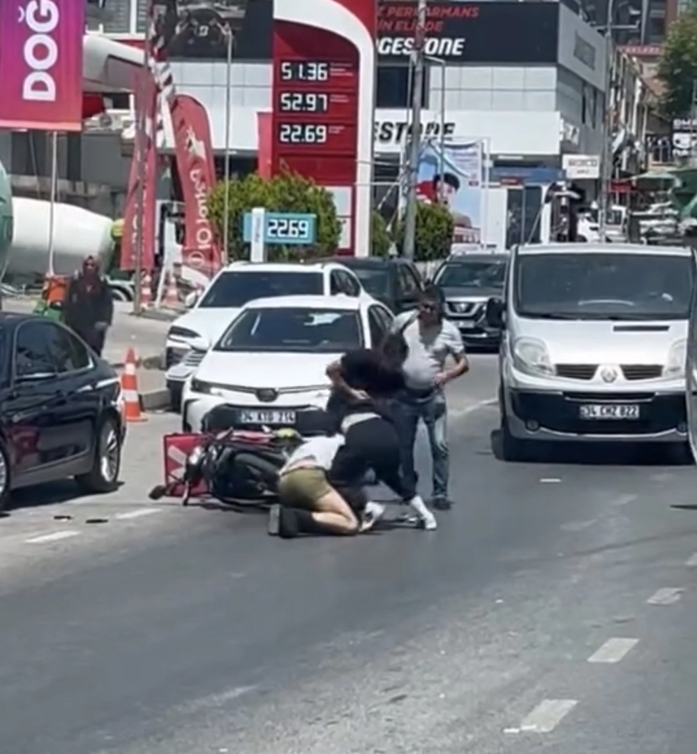Mert ORDU/İSTANBUL,(DHA) - MALTEPE’de trafikte bir otomobilden inen 2 kişi ile motokurye arasında çıkan kavgayı çevredekiler ayırdı. Kavga, çevredeikler tarafından cep telefonu ile kaydedildi.Olay öğle saatlerinde Zümrütevler Mahallesi Başöğretmen Caddesi üzerinde meydana geldi. Trafikte aynı yöne seyreden motokurye ile bir otomobildeki 2 kişi arasında henüz bilinmeyen bir sebeple tartışma çıktı. Tarafların yol üzerinde durarak araçlarından inmesi üzerine büyüyen tartışma, kavgaya dönüştü. Kavga eden taraflar, çevredeki vatandaşların araya girmesi ile ayrıldı. Yaşananlar, cep telefonu kamerası ile kaydedildi. (DHA)