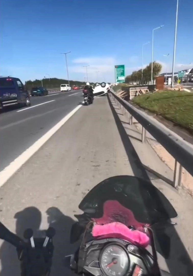 Mert ORDU/İSTANBUL,(DHA)- SANCAKTEPE'de sürücüsünün direksiyon hakimiyetini kaybettiği otomobil takla atarak kaza yaptı. Kazada araç içinde sıkışan 2 kişi, kendilerine yardım etmeye çalışan vatandaşa hakaret ederek sert çıktı. O anlar kaza geçirenlerin yardımına koşan motosikletlinin kask kamerasına yansıdı.Kaza, dün Sancaktepe Samandıra Bağlantı Yolu'nda meydana geldi. İddiaya göre, hafif ticari araç sürücüsü direksiyon hakimiyetini kaybederek refüje çarptı. Çarpmanın etkisiyle savrulan araç takla atarak ters döndü. Araç içinde bulunan 2 kişi ise yaralandı. Kazayı gören çevredeki vatandaşlar ve 2 motosikletli yardıma koştu. Kazaya şahit olan 1 kişi aracın camını ayağıyla kırdı ardından da içeridekilere "İyi misiniz" diye sordu. Bu sırada araç içindekiler, kendilerine yardım etmeye çalışan kişiye hakaret ederek "İyiyiz de cama neden vuruyorsunuz" diye sert çıktı. Yaşananlar, kaza sırasında yoldan geçen motosiklet sürücüsünün kask kamerası tarafından kaydedildi. İhbar üzerine olay yerine sağlık, itfaiye ve polis ekipleri sevk edildi. Yaralılar ambulansla hastaneye kaldırılırken polis kazayla ilgili inceleme başlattı(DHA)
