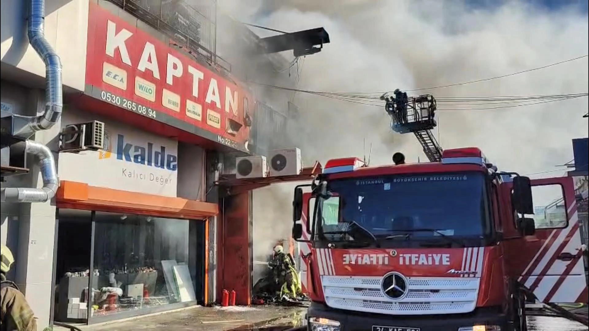 Emre KURT - Vehbi DEMİR / İSTANBUL (DHA)- ZEYTİNBURNU Demirciler Sitesi'nde 6'ncı caddede bulunan yapı malzemeleri satan bir iş yerinde henüz bilinmeyen bir nedenle yangın çıktı. Olay yerine çok sayıda itfaiye ekibi sevk edildi. Ekiplerin yangına müdahalesi sürüyor. (DHA)