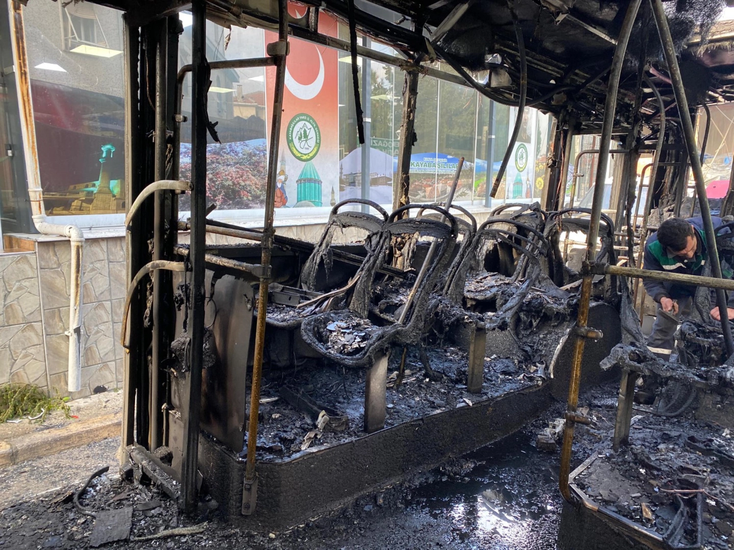 Tolga TAHÇI/İZMİR, (DHA)- İZMİR'in Konak ilçesinde seyir halindeki belediye otobüsünde yangın çıktı. Yolcular tahliye edilirken, otobüs kullanılmaz hale geldi. Adem Yavuz Caddesi'nde seyir halinde olan 35 DB 0160 plakalı 44 numaralı Mersinpınar-Gümrük otobüsünde, saat 08.30 sıralarında yangın çıktı. Motor bölümündeki dumanı fark eden şoför, aracı kenara çekerek yolcuları tahliye etti. Tahliye sonrası alevler tüm otobüsü sardı. İhbarla olay yerine sevk edilen itfaiye ekipleri alevleri söndürürken, otobüs kullanılamaz hale geldi. Cadde trafiğe kapatılırken, alevlere müdahale anları güvenlik kamerasına yansıdı. Yangının çıkış nedeni araştırılıyor. (DHA)