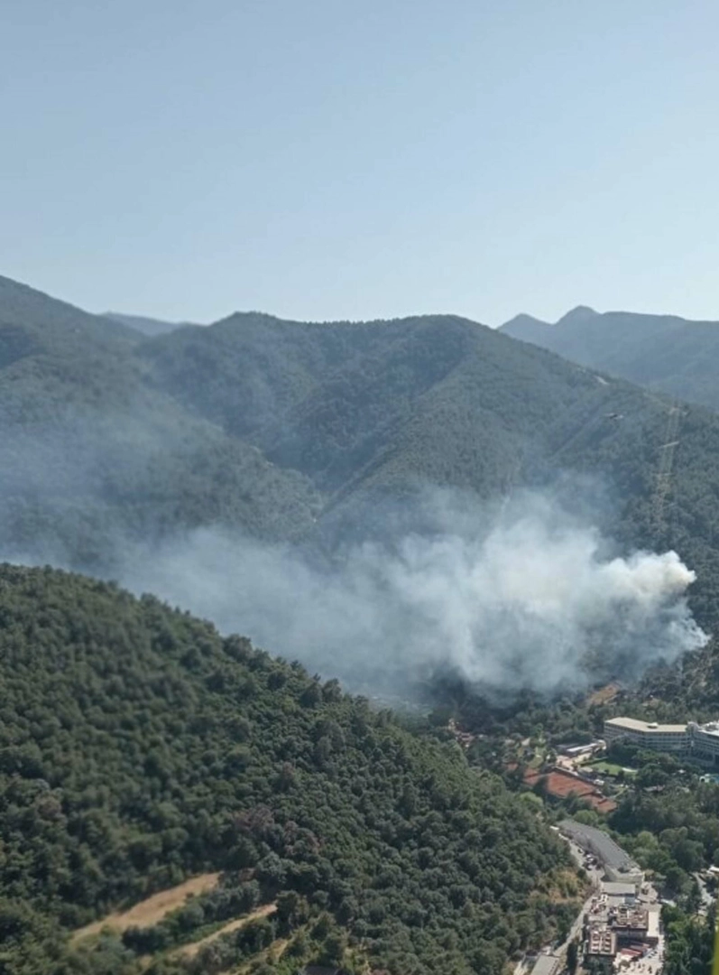 Dinçer Can SONER/ İZMİR, (DHA)-İZMİR'in Narlıdere ilçesinde orman yangını çıktı. Ekiplerin havadan ve karadan yangına müdahalesi sürüyor.Narlıdere ilçesi Ilıca Mahallesi'nde yakınlarındaki ormanda, saat 16.30 sıralarında yangın çıktı. Alevleri ve dumanı görenler, durumu itfaiye ekiplerine bildirdi. Bölgeye İzmir Orman Bölge Müdürlüğü'ne ait 3 uçak, 4 helikopter, 22 arazöz, 6 su ikmal ve 3 dozer sevk edildi. Yangına ekiplerin havadan ve karadan müdahalesi sürüyor.(DHA)
