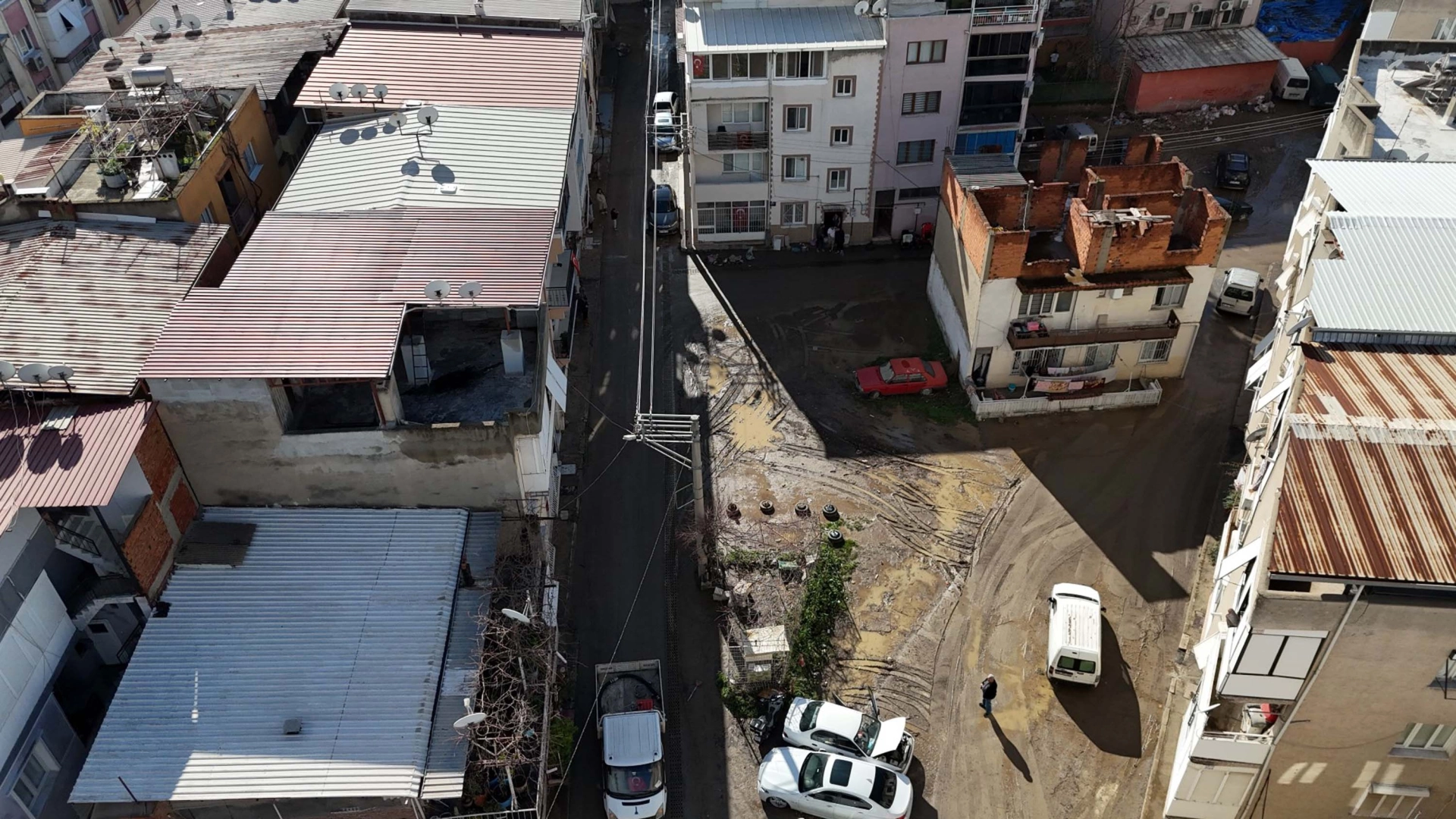 ÇAMUR KAPLI SOKAKLAR DRONLA GÖRÜNTÜLENDİ