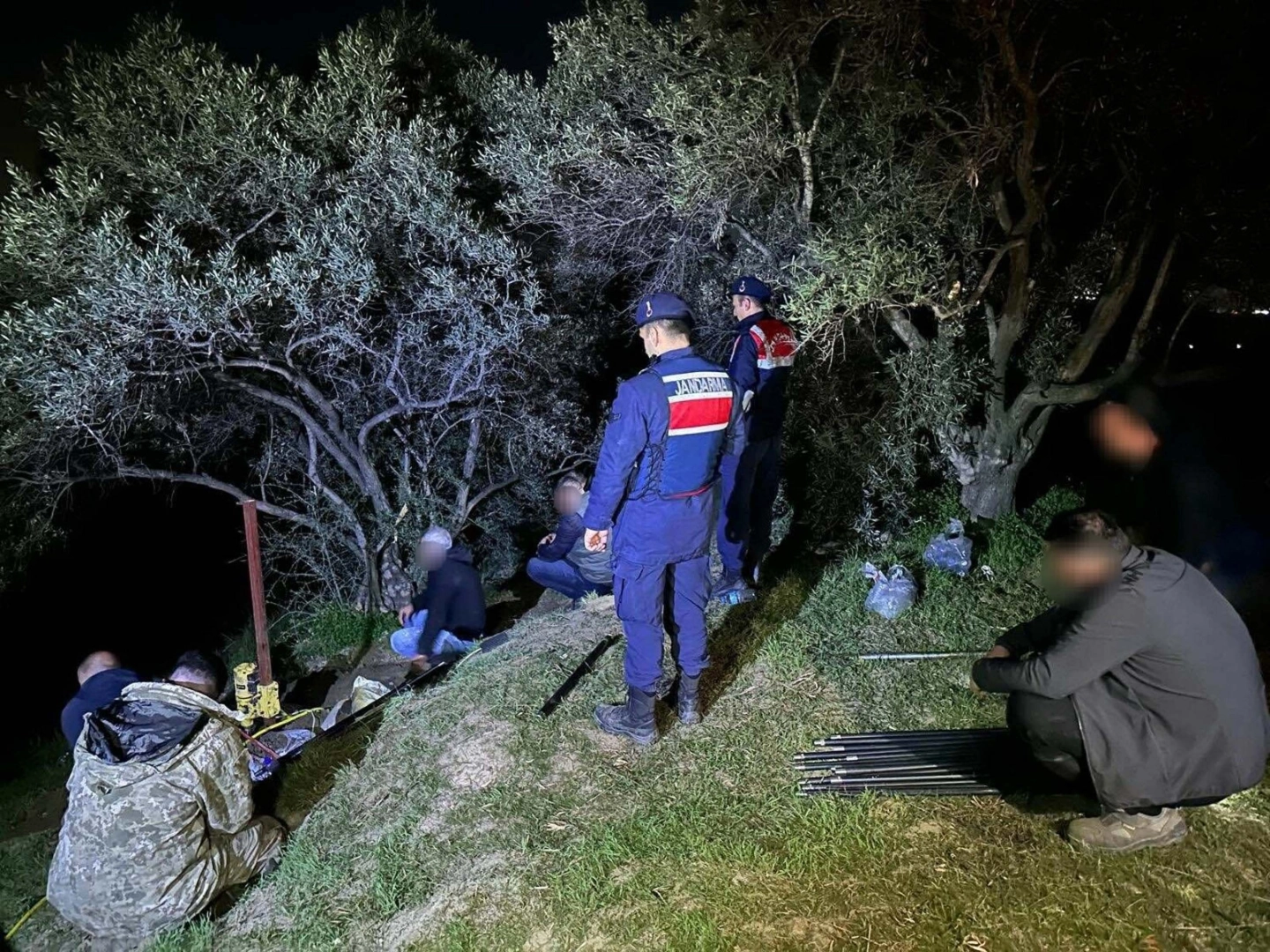 Burhan CEYHAN/AYDIN, (DHA)- AYDIN'ın Germencik ilçesinde kaçak kazı yapıp tarihi eser arayan 7 şüpheli, suçüstü yakalandı.Germencik İlçe Jandarma Komutanlığı ekipleri, kırsal Moralı Mahallesi yakınlarında kaçak kazı yapılıp tarihi eser arandığı bilgisi sonrası çalışma başlattı. Koparan mevkisine dün akşam saatlerinde operasyon düzenlendi. Kaçak kazı yaptıkları belirlenen H.Y., E.S., T.A.E., E.K., H.S., E.İ. ve M.K. suçüstü yakalandı. Bölgede yapılan aramalarda; 1 traktör, 1 adet 3 tonluk su tankeri, 1 jeneratör, 1 su motoru, 1 karot delme aleti ve aparatları, 200 metre kablo, 1 yılan kamera, 65 metre su hortumu ve 21 muhtelif kazı malzemeleri ele geçirildi. Gözaltındaki şüphelilerin işlemlerinin sürdüğü bildirildi. (DHA)