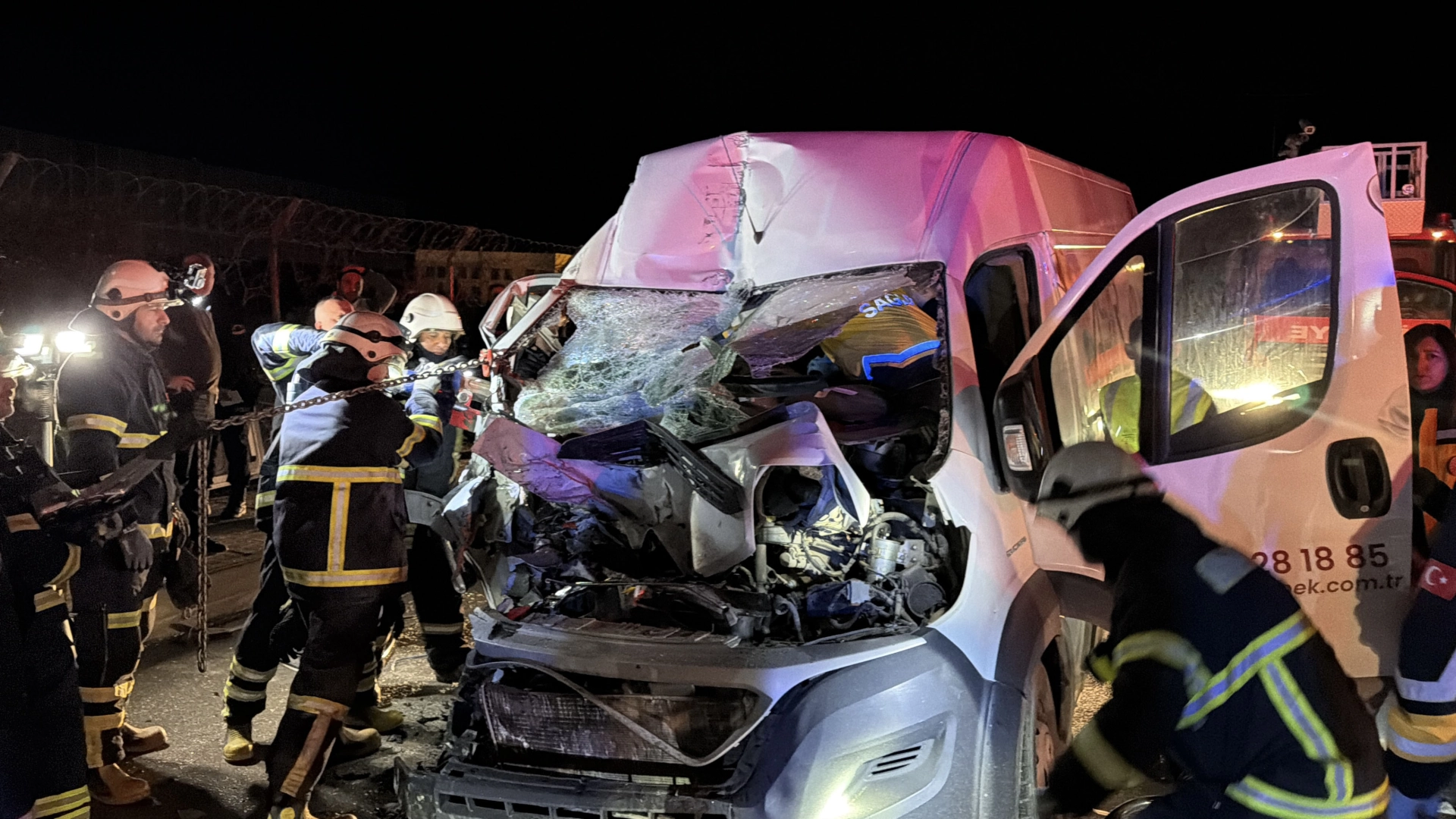 Kamyonet park halindeki TIR’a çarptı; sıkışan yolcu ağır yaralandı