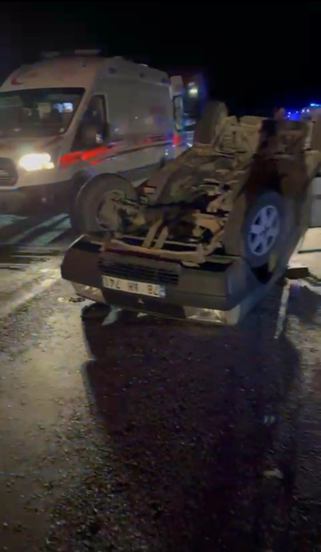 Murat ÖZELCİ/KARABÜK, (DHA)-KARABÜK'te takla atarak ters dönen otomobildeki 1'i çocuk 4 kişi yaralandı.Kaza, gece saatlerinde Karabük- Yenice kara yolunun Yeşilköy köyü mevkisinde meydana geldi. Hüseyin K. (58) idaresindeki 78 AH 741 plakalı otomobil, sürücüsünün kontrolünü yitirmesi sonucu devrildi. Takla atan otomobil ters dönerken, olay yerine sağlık, itfaiye ve jandarma ekibi sevk edildi. Kazada yaralanan Hüseyin K. ve yolcular Ayşegül K. (57), Kezban K. (61), ve Nizamettin Cihan K. (8), itfaiye ve sağlık ekipleri tarafından araçtan çıkarıldı. Yaralanan 1'i çocuk 4 kişi, sağlık ekipleri tarafından Karabük Eğitim ve Araştırma Hastanesi'ne kaldırıldı. Yaralıların durumlarının iyi olduğu öğrenildi. Kazayla ilgili soruşturma başlatıldı. (DHA)