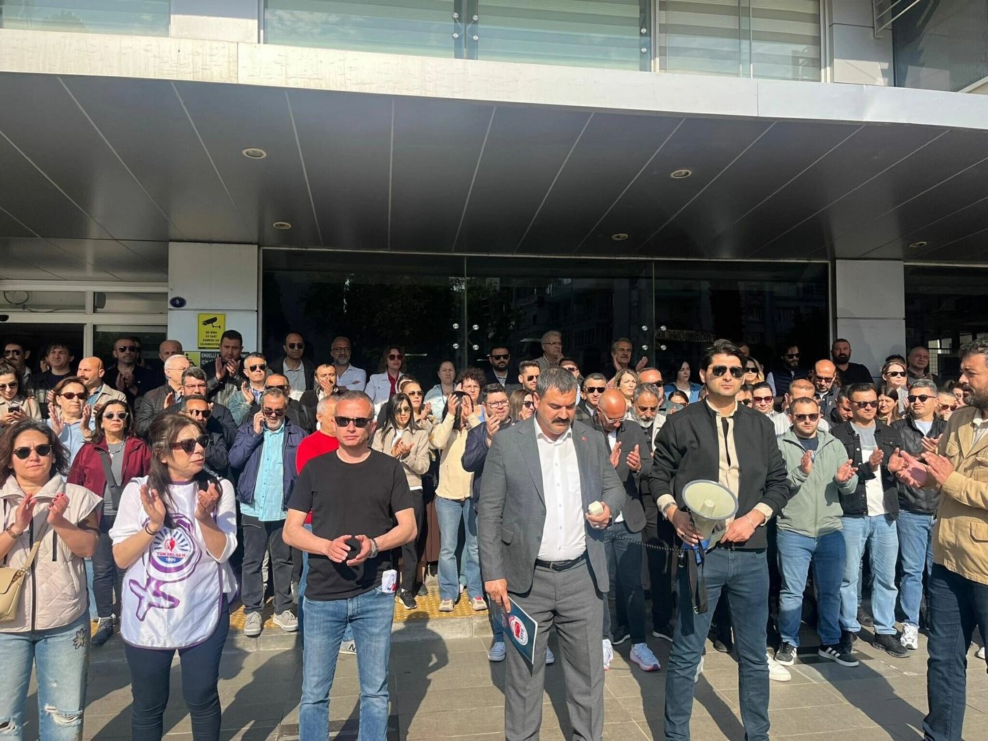 Karşıyaka Belediyesi'nde çalışan memurlar, sosyal denge tazminatını alamadıkları gerekçesiyle tam gün iş bırakma eylemi başlattı. Belediye önünde bir araya gelen Birlik Yerel-Sen, Tüm Yerel-Sen, Tüm Bel-Sen'e bağlı memurlar sloganlar eşliğinde eyleme başladı. Memurlar adına konuşan Birlik Yerel-Sen Genel Başkanı Reşat Bozat, her bir memurun 150 bin TL alacağı olduğunu belirtip, "455 memur 2024-2025'e ait sosyal denge tazminatlarından doğan haklarını almadı. Bugün burada bir 'uzlaşmazlığı' değil, Karşıyaka Belediye Başkanı eliyle yürütülen sistemli bir emek kırımı ve hukuk tanımazlığı hep birlikte izliyoruz. Bu kurumda nezaket dönemi bitmiştir. Karşıyaka Belediyesi yönetimi, emekçinin alın terini masada meze yapmaya kalkışarak haddini aşmıştır" dedi.