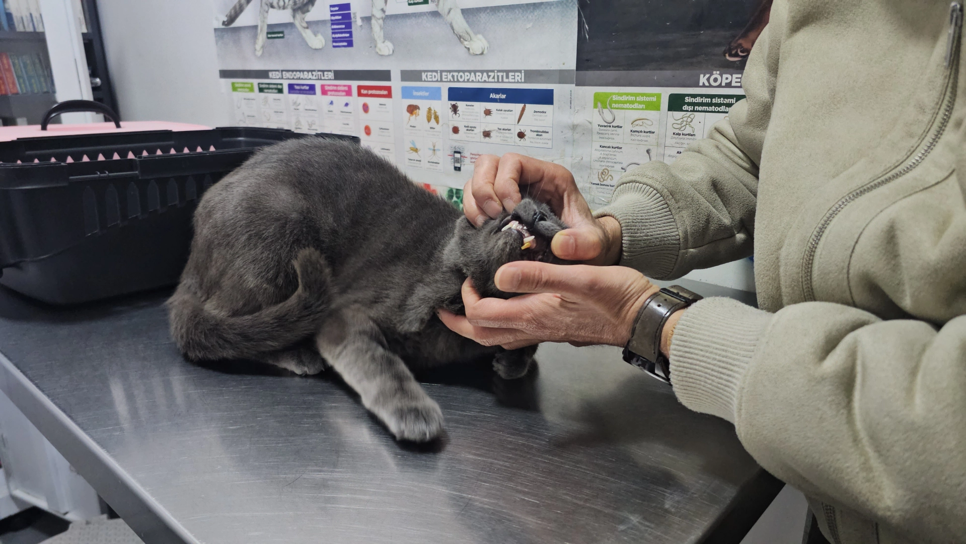 Ali Sencer ARSLAN/ZONGULDAK, (DHA)- ZONGULDAK’ta, dişi kırılan kediye 1,4 gram altından diş yapıldı. Kedilerde altın dişin nadir olduğunu, Türkiye’de ilk olabileceğini belirten veteriner hekim Ömer Faruk Alkan, “Normal porselen vesaire kediye yapamıyoruz, direnci o kadar yüksek olmuyor. Altının vücuda uyumu daha rahat oluyor. Maliyet açısından, 1,4 gram gibi bir altın gitti, işlemlerin dışında” dedi.Veteriner kliniğinde çalışan Neslihan Uzun’un kedisinin dişi kırıldı. Bunun üzerine Uzun, veteriner hekime durumu anlattı. Neslihan Uzun ve eşi Özkan Uzun, kedilerine diş kaplaması yaptırmaya karar verdi. Dişin altından yapılmasını isteyen çift, ham 1,4 gram altın aldı. British cinsi kediye önce kırılan dişi için kanal tedavisi yapıldı ardından ameliyatla yerine altından diş yapıldı. Kedi sağlığına kavuşurken, yeme alışkanlığında bir farklılık gözlenmediği belirtildi.‘İLKİ YAŞAYALIM DEDİK’Kedinin sahibi Özkan Uzun, maliyeti değil kedinin yaşam kalitesini önemsediklerini ifade ederek, “Hem bir ilki yaşayalım dedik, hocalar da çok yardımcı oldular. Eşimle karar verdik, yaptık. Tabii ki daha iyi olacağına kanaat getirdiğimiz için oğlumuza böyle bir diş yaptırdık. Bayağı alıştı, yemek yemede hiçbir problemi yok. Başta yaş mama ile beslendik şimdi kuru mamaya döndük. Herhangi bir sıkıntısı yok. Bildiğimiz kadarıyla Türkiye’de ilk. Bir sıkıntısı yok, umarım da olmaz” diye konuştu.‘KEDİLERİN DE AYNI ŞEKİLDE CANI YANIYOR’ Kediye altın diş yapan ekipte yer alan veteriner hekim Ömer Faruk Alkan, “Genç bir kediydi, British bir çocuktu. Geldiğinde dişinin kırık olduğunu fark ettik. Kedilerin acı eşiği çok yüksektir. Kolay kolay acı hissi olmaz. Ama kırık dişle nasıl insanların canı çok yanıyorsa kedilerin de aynı şekilde canı yanıyor. Biz buradaki muayenede, sinirlerin açık olduğunu gördük. Hasta sahibiyle konuşup önce kanal tedavisi sonra da kaplama tedavisi yapmaya karar verdik. Önce kanal tedavisini yaptık. Altının belli başlı avantajları var metale göre. Hem hafiflik hem de uyum süreci birazcık daha rahat oluyor bizim için” ifadelerini kullandı.‘5-6 BİN LİRA SADECE ALTINA GİTTİ’İşlemin yapılmasının üzerinden bir hafta geçtiğini ve kedinin sağlığının iyi olduğunu ifade eden Alkan, “Altınla metal arasında öncelikle ağırlık farkı var. Normal porselen vesaire kediye yapamıyoruz, direnci o kadar yüksek olmuyor. Bir de altının vücuda uyumu daha rahat oluyor. Onun dışında çok büyük bir farkı yok. Maliyet açısından 1,4 gram gibi bir altın gitti, işlemlerin dışında. Altının fiyatı önemli olandı. 5-6 bin lira sadece ham altın gitti” dedi.‘TÜRKİYE’DE İLK DENEBİLİR’Kedilere altın diş yapımının nadir olduğunu söyleyen Alkan, şöyle konuştu:“Kökünün belli bir kısmı kalana müdahale edebiliyoruz, kanal tedavisiyle önce sinirleri temizliyoruz. Önce kapatılıyor sonra ya metal ya altın gibi biraz sağlam bir maddeyle dolgu şeklinde bırakılıyor. Tamamı gittiyse ya da tutunacak bir yer yoksa müdahale edilemiyor. Altın diş, internette ve kaynaklarda taradığımız kadarıyla çok fazla yapılmamış. Hatta Türkiye’de herhangi bir kaynak yok, ilk denebilir. Nadir bir uygulama.” (DHA)