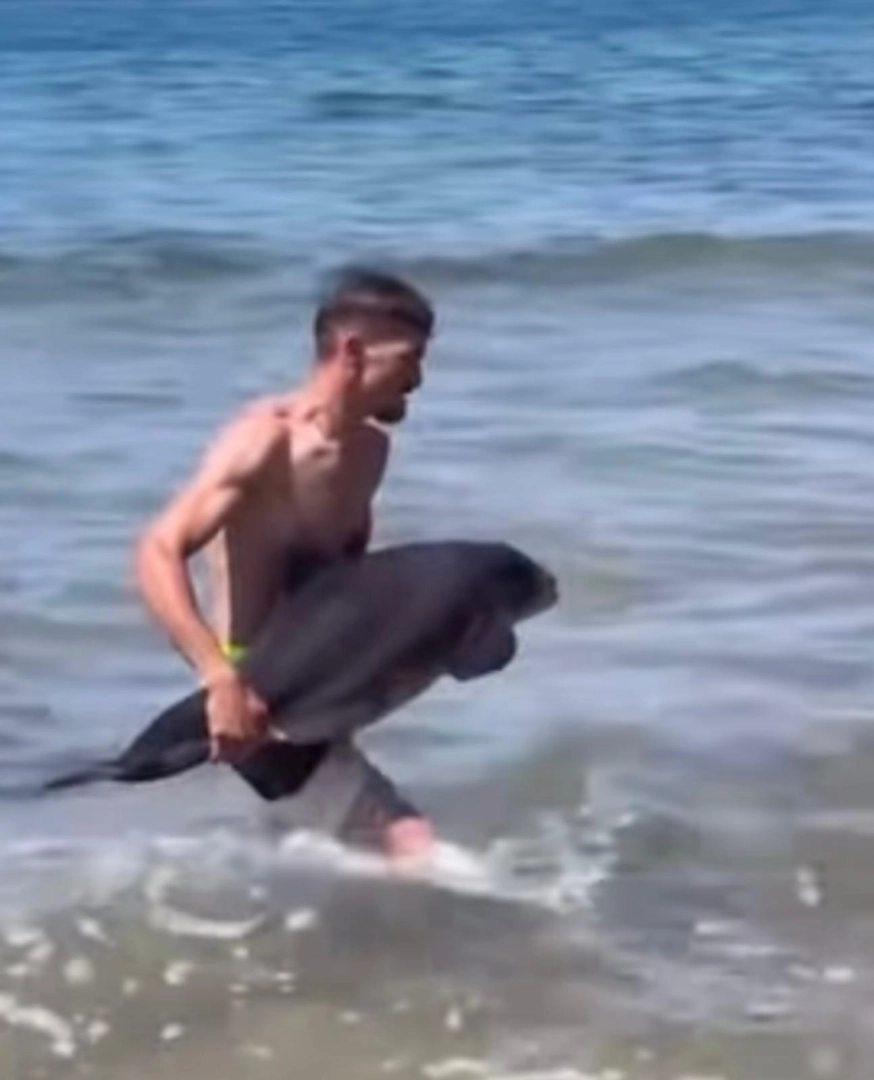 Ayhan ACAR/AMASRA, (Bartın), (DHA)- BARTIN’ın Amasra ilçesi Bozköy plajında sahile vuran ve kuyruğundan hafif yaralı olduğu belirlenen yunus, yeniden denize bırakıldı.Dün akşam saatlerinde Amasra Bozköy plajında olan bazı kişiler, yavru bir yunusun kıyıya vurduğunu gördü. Çevredekilerden biri yunusu kucağına alıp, karaya çıkardı. Yapılan incelemede yunusun kuyruk kısmında küçük bir yara olduğu belirlendi ve yeniden denize bırakıldı. O anlar cep telefonuyla görüntülendi. (DHA)