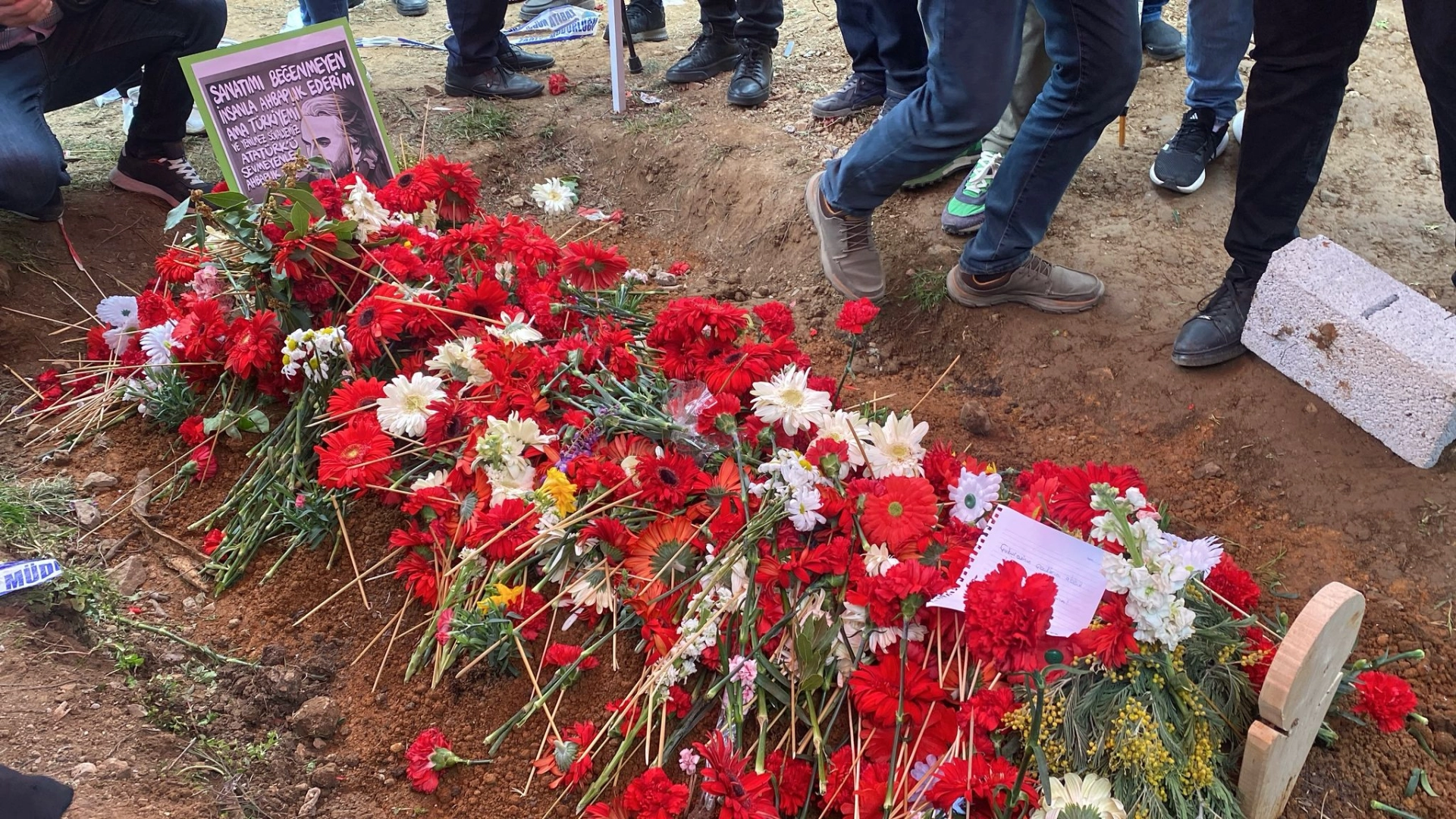 KABRİ ÇİÇEKLERLE DONATILDIKuzey Kıbrıs Türk Cumhuriyeti'nde konser sırasında kalp krizi geçirip, kaldırıldığı hastanede yaşamını yitiren Volkan Konak, vasiyeti üzerine memleketi Trabzon'un Maçka ilçesinde babasının kabri yanındaki ceviz ağacının altına defnedildi. Çok sayıda kişinin katıldığı defin sırada naaşı alkışlarla karşılanan Konak'ın yakınları ile hayranları gözyaşı döktü. Cenazeye katılanlar, çiçek ve not bıraktıkları Konak'ın kabri başında dua etti. CHP Genel Başkanı Özgür Özel, Konak'ın tabutuna omuz verip, Konak ailesi ve yakınlarına taziye dileklerine bulundu. Eski Trabzonspor Teknik Direktörü Şenol Güneş de Konak'ın mezarı başında dua okudu. (DHA)FOTOĞRAFLI
