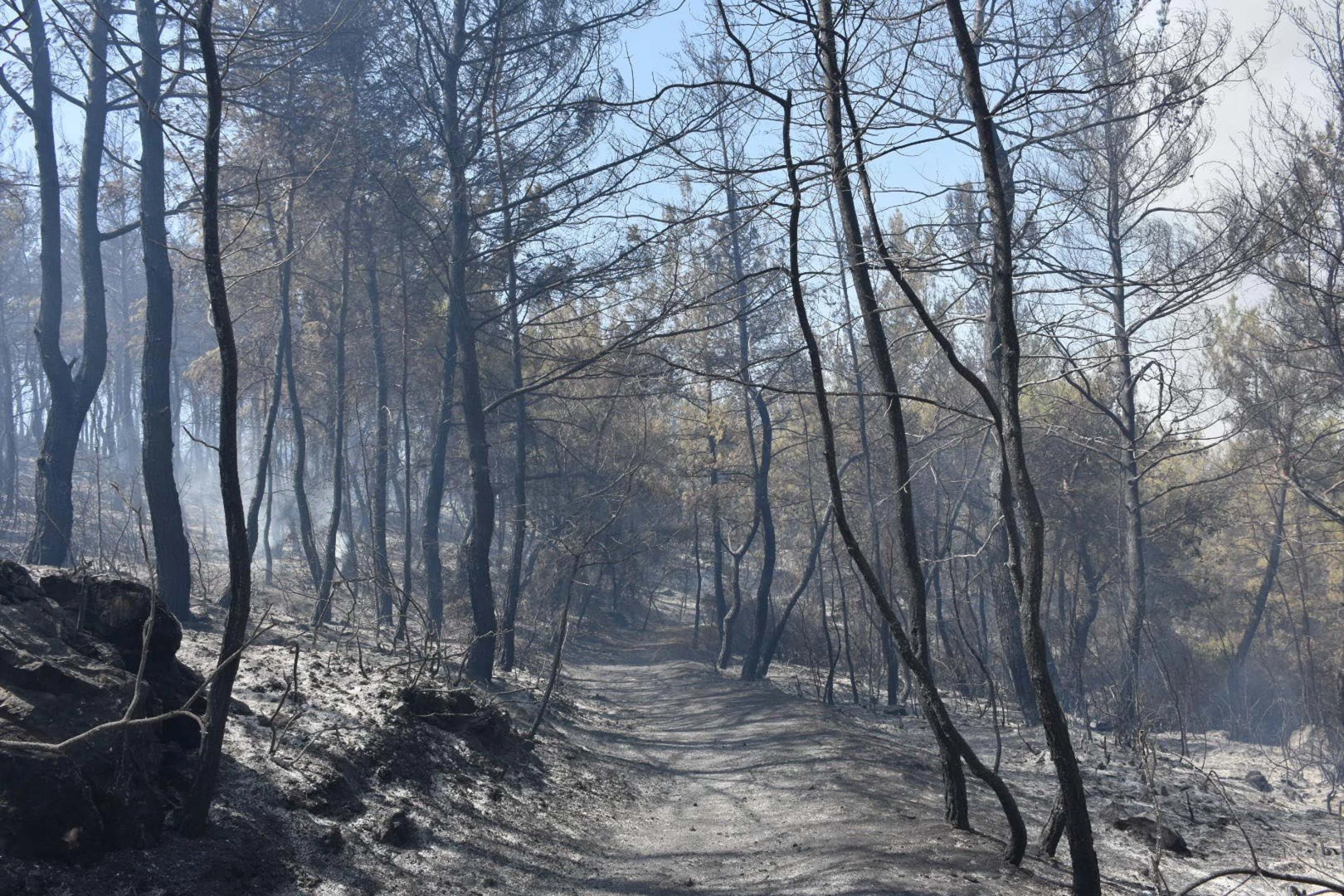 Tekin GÜRBULAK/MENDERES (İzmir), (DHA)-İZMİR'in Menderes ilçesinde çıkan orman yangınları ile ilgili gözaltına alınıp, adliyeye sevk edilen 2 şüpheliden 1'i tutuklandı. Menderes ilçesi Şaşal Mahallesi'ndeki ormanda, önceki gün saat 13.00 sıralarında, Çamönü Mahallesi'ndeki ormanda da 13.30 sıralarında yangın çıktı. İzmir Orman Bölge Müdürlüğü'ne ait hava ve kara araçları ile yangına müdahalede bulunuldu. Yangın, ertesi gün kontrol altına alındı. 150 hektar alanın yangından etkilendiği belirtildi. Olayla ilgili bölgede hobi bahçesi sahibi olduğu ancak isimleri açıklanmayan 2 şüpheli, gözaltına alındı. Adliyeye sevk edilen şüphelilerden biri çıkarıldığı mahkemece tutuklandı, diğeri adli kontrol şartıyla serbest bırakıldı.(DHA)