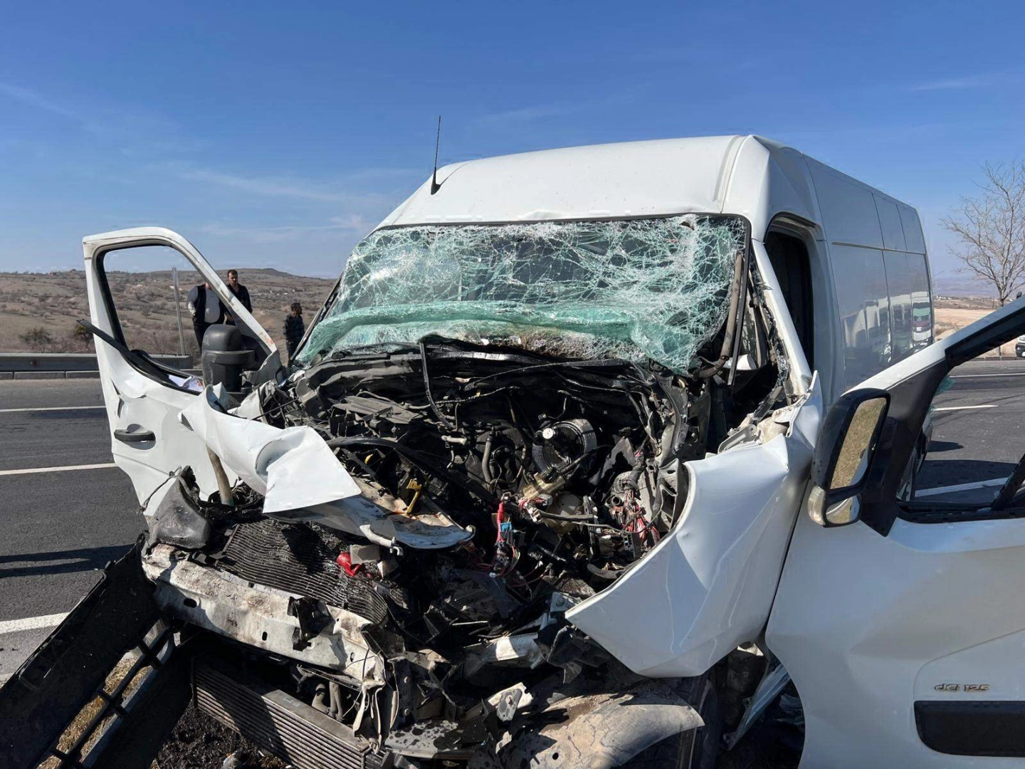 Ahmet KORKMAZER/NEVŞEHİR, (DHA)- NEVŞEHİR'de minibüsün TIR'a arkadan çarptığı kazada Özgür Ali Gündoğdu (40) öldü, kuzeni Fazıl Gündoğdu yaralandı.Kaza, saat 14.30 sıralarında, Nevşehir-Aksaray çevre yolunda meydana geldi. Özgür Ali Gündoğdu idaresindeki 34 GEV 992 plakalı minibüs, Galip A. idaresindeki 45 AKK 886 plakalı TIR'a arkadan çarptı. Kazada, Gündoğdu ile yanındaki Fazıl Gündoğdu yaralandı. Çevredekilerin ihbarıyla bölgeye polis ve sağlık ekipleri sevk edildi. Ambulansla Nevşehir Devlet Hastanesi'ne kaldırılan yaralılardan Özgür Ali Gündoğdu, doktorların tüm müdahalesine rağmen hayatını kaybetti. Kuzeni Fazıl Gündoğdu'nun sağlık durumunun da ciddiyetini koruduğu öğrenildi. Kaza sonrası TIR şoförü Galip A. gözaltına alındı. (DHA)