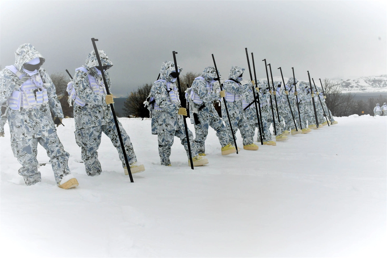 Bakanlığın sanal medya hesabından yapılan paylaşımda eğitime ilişkin fotoğraflar yer alırken, "9'uncu Komando Tugay Komutanlığı ve 10'uncu Komando Tugay Komutanlığı'nca derin kar ve şiddetli soğuklarda muharebe eğitimi icra edildi" denildi. (DHA)