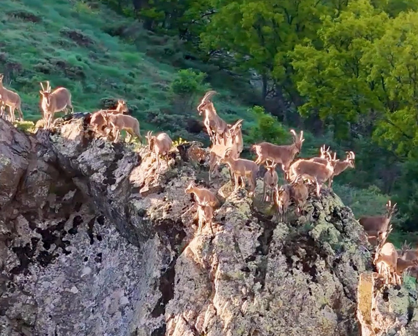Muzaffer KOŞAN/ERZİNCAN, (DHA)- ERZİNCAN Doğa Koruma ve Milli Parklar Şube Müdürlüğü tarafından sürü halinde dolaşan dağ keçileri görüntülendi. Munzur Dağları'nda yaşayan dağ keçileri, Doğa Koruma ve Milli Parklar Erzincan Şube Müdürlüğü Erzincan Şubesi tarafından dronla görüntülendi. Sosyal medyada paylaşılan sürü halindeki dağ keçilerinin görüntüleri, büyük ilgi gördü. Sosyal medya hesaplarından görüntüleri paylaşan Erzincan Valisi Hamza Aydoğdu, "Erzincan'ın dağlarında rüzgar hafif, gökyüzü berrak, dağ keçileri bile huzurla dolaşıyor. Çünkü bu şehirde doğa bile tebessüm ediyor. Huzurun şehri, Erzincan" dedi.(DHA)