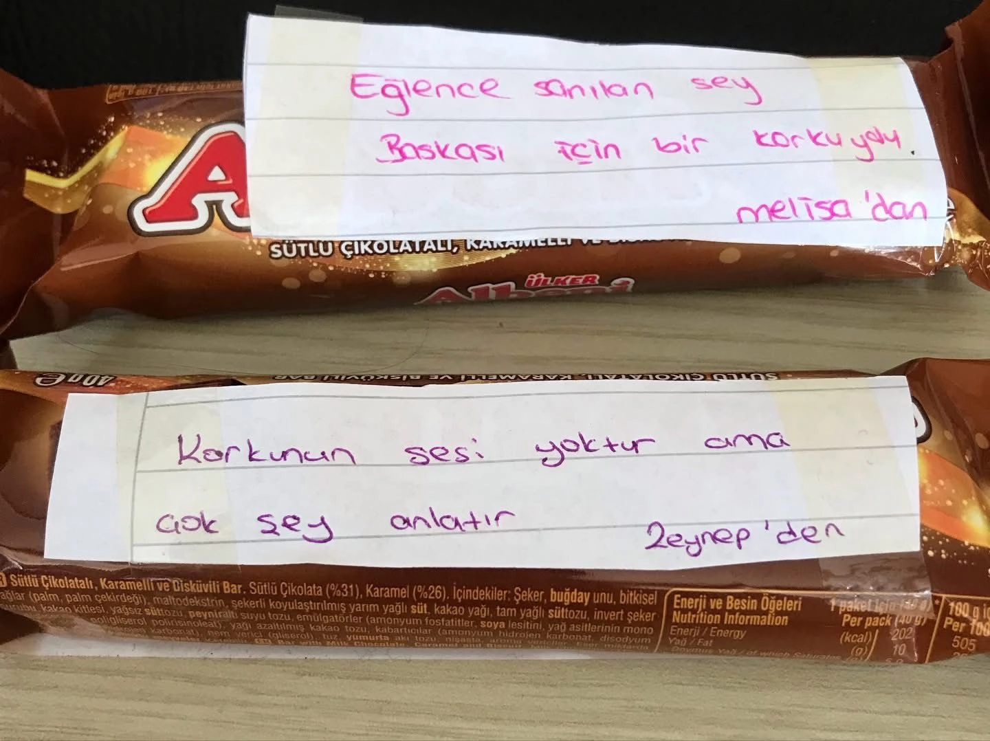 Ayhan ACAR/ULUS (Bartın), (DHA)- BARTIN'ın Ulus ilçesi Kumluca beldesi Şehit Erol Ercan İmam-Hatip Ortaokulu öğrencileri, mezun oldukları ilkokul öğretmenlerine destek mesajlarının yazılı olduğu çikolatalar hediye etti.