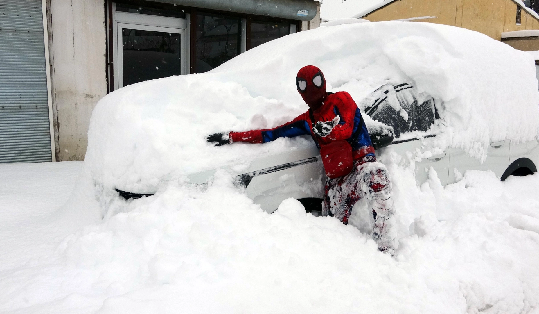 Barış KUL/ERCİŞ (Van), (DHA)- TÜRKİYE’yi 'Örümcek Adam' kostümüyle gezen Ayaz Salih Koç (26), geldiği Van’ın Erciş ilçesinde depremde yakınlarını kaybeden esnaf Murat Kaya'yı ziyaret etti. Kaldırım temizleyen Koç, çocuklarla kar topu oynadı.