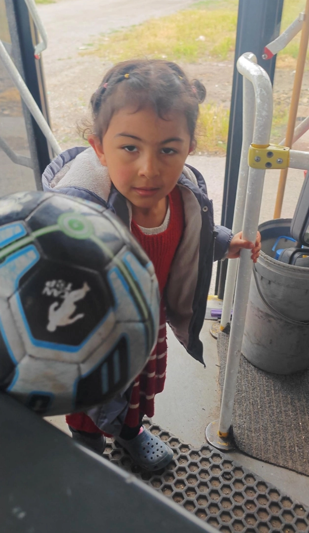 Furkan KAVUKLU/ KAYSERİ, (DHA)- KAYSERİ’de özel halk otobüsü şoförü, yolda ailesiyle bekleyen küçük kızın havası inik topunu şişirdi. Küçük kızın sevinci, şoförün cep telefonu kamerasıyla kaydedildi.Kayseri’de özel halk otobüsü şoförü Bahadır Barbaros, sefer sırasında ailesiyle birlikte yolda elinde havası inik topla bekleyen küçük kızı gördü. Bunun üzerine otobüsü durduran Barbaros, küçük kızı yanına çağırdı. Otobüse binen kızın elindeki havası inik topu şişiren Barbaros, o anları cep telefonu ile kayda aldı. Küçük kızın, topu şişirildikten sonraki sevinci izleyenlerin yüreğini ısıttı. (DHA)