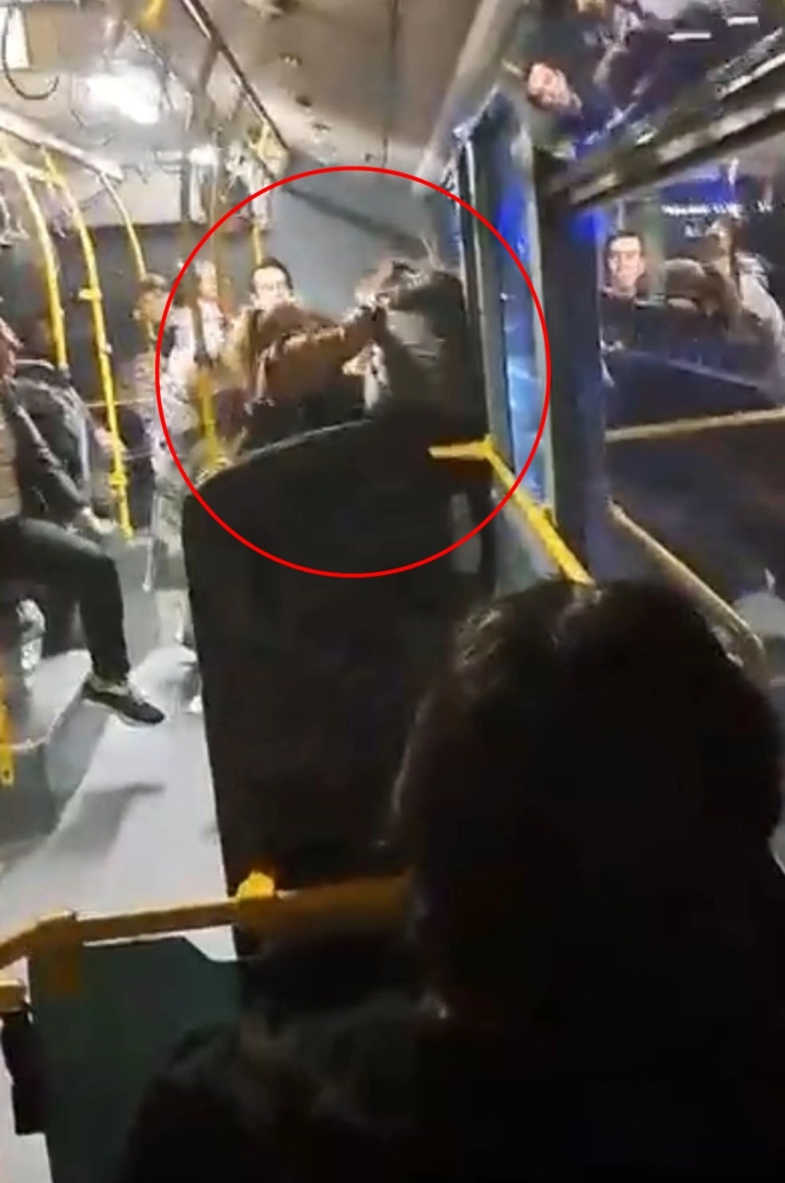 Yiğithan HÜYÜK/BURSA, (DHA)- BURSA’da belediye otobüsünde iki kadın yolcu arasında çıkan yer kavgası, bir başka yolcunun cep telefonu kamerasıyla kaydedildi.