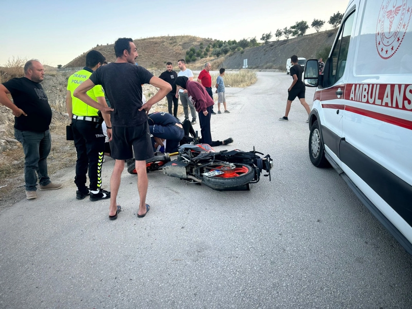 Levent TÜYSÜZ/ PAMUKOVA(Sakarya), (DHA)- SAKARYA'nın Pamukova ilçesinde devrilen motosikletin sürücüsü yaralandı.Kaza akşam saatlerinde Mekece Mahallesi D-650 Karayolu üst köprü yolu mevkisinde meydana geldi. Ömer Faruk Ö. idaresindeki 54 ACB 878 plakalı motosiklet, sürücüsünün direksiyon hakimiyetini kaybetmesi sonucu devrildi. Kazayı görenlerin 112 Acil Çağrı Merkezine haber vermesi üzerine olay yerine sağlık ve jandarma ekipleri sevk edildi. Yaralanan sürücü Ömer Faruk Ö., olay yerine gelen sağlık ekiplerinin ilk müdahalesinin ardından Pamukova İlçe Hastanesi'ne kaldırıldı. Burada yapılan müdahalenin ardından yaralı sürücü, Sakarya Eğitim ve Araştırma Hastanesi'ne (SEAH) sevk edildi. Ömer Faruk Ö.'nün hayati tehlikesinin bulunmadığı öğrenildi.Jandarma ekipleri kazayla ilgili inceleme başlattı.(DHA)