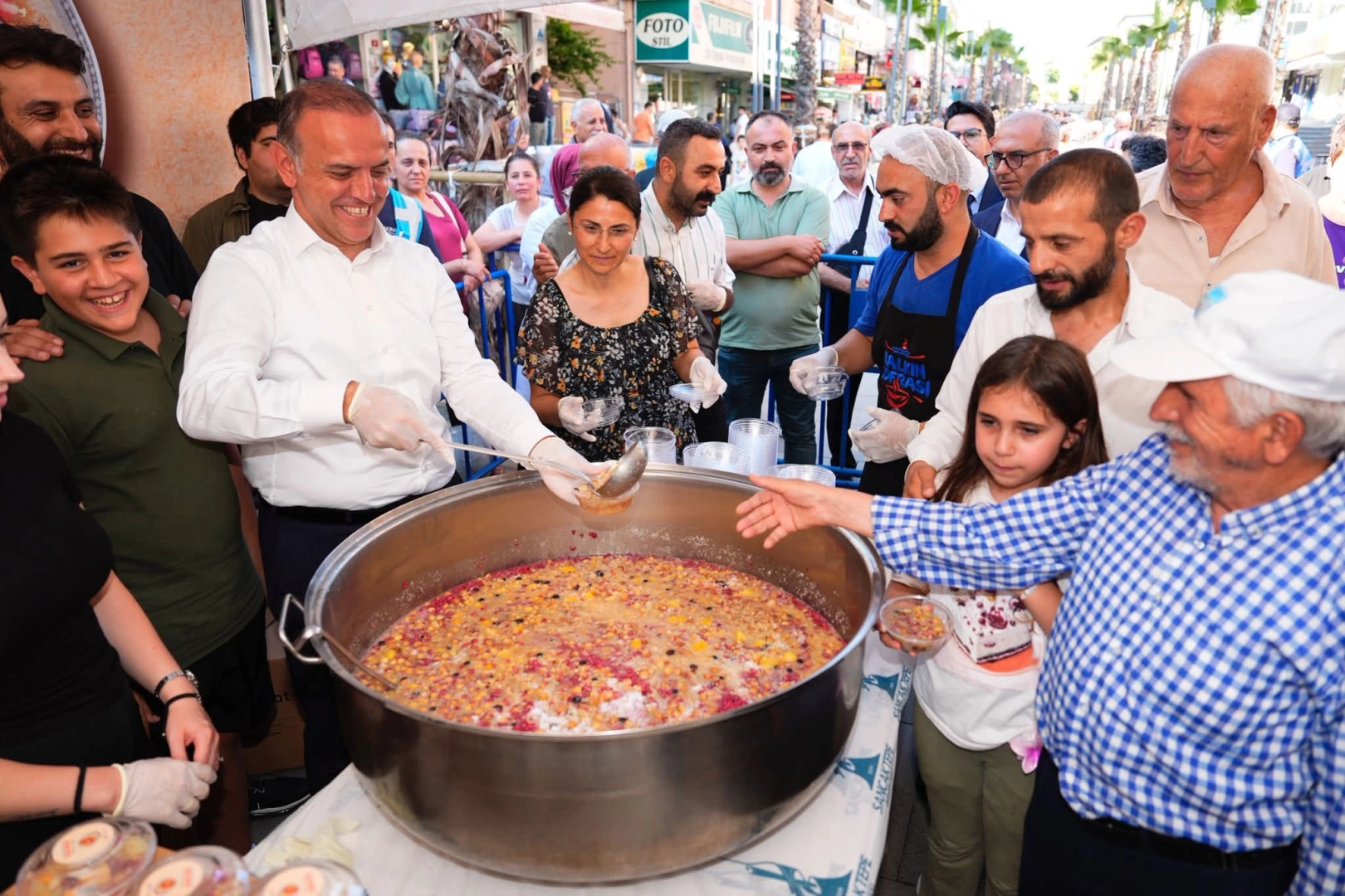 İSTANBUL, (DHA) - SANCAKTEPE'de Samandıra, Sarıgazi ve Yenidoğan bölgesi olmak üzere 3 farklı noktada kurulan alanlarda çok sayıda vatandaşa aşure dağıtıldı.Samandıra Meydanında aşura dağıtım etkinliğine katılan Sancaktepe Belediye Başkanı Alper Yeğin, "Kaynattığımız aşuremiz ülkemizin birliğine beraberliğine ve kardeşliğine vesile olsun" dedi.Sancaktepe Belediyesi tarafından, Muharrem Ayı dolayısıyla ilçenin 3 farklı noktasında yaklaşık 10 bin kişiye aşure dağıtımı gerçekleştirildi. Aşure ikramının yapıldığı noktalardan biri olan Samandıra Meydanında kurulan çadırda dağıtılan aşureye vatandaşın ilgisi yoğun oldu. Çok sayıda vatandaşa aşure dağıtılan etkinliğe Sancaktepe Belediye Belediye Başkanı Alper Yeğin de katıldı. Etkinlikte konuşan Yeğin, "Bugün 3 bölgede aşure ikramımız oluyor. Muharrem Ayı'nda tutulan oruçlardan sonra toplumumuzun inancı gereği aşureleri kaynatıyoruz. Birlik beraberlik ve kardeşliğimizin pekişmesi amacıyla Sancaktepe Belediyesi olarak bugün 3 meydanımızda komşularımıza aşure ikram ediyoruz. Komşularımız mutlu, biz de hizmet etmekten keyif alıyoruz. Toplumun bütün kesimlerine eşit ve adil şekilde yaklaşmaya çalışıyoruz. Muharrem Ayı'nda Cemevlerimizde mahalle evlerimizde oruç açma lokmalarında komşularımızla beraberdik. Kaynattığımız aşuremiz ülkemizin birliğine beraberliğine ve kardeşliğine vesile olsun. Bir arada yaşamak kıymetli bir şey" diye konuştu.