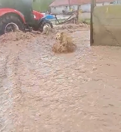 Uğur YİĞİT/ SİVAS, (DHA) - SİVAS'ta kent genelinde etkili olan sağanak, sele neden oldu. Merkeze bağlı Yanalak köyünde bir köpek sel sularına kapılmaktan son anda kurtuldu. Sivas'ta kent genelinde öğleden sonra sağanak etkili oldu. Merkeze 58 kilometre uzaklıkta bulunan Yanalak köyünde derenin taşması sonucu sel oluştu. Köyün içinden akan sel suları bazı evlerin içine doldu. Bir köpek sel sularına kapılmaktan son anda kurtuldu. Sel nedeniyle köyde tarım arazilerinde hasar oluştu. Merkeze bağlı Bedirli köyünde de sağanak, seli beraberinde getirdi. Sel sularının geldiği bölgede hayvan otlatan bir çoban sürüsünü güvenli bölgeye aldı. Sel nedeniyle tarım arazilerinde hasar oluştuğu bildirildi. (DHA)