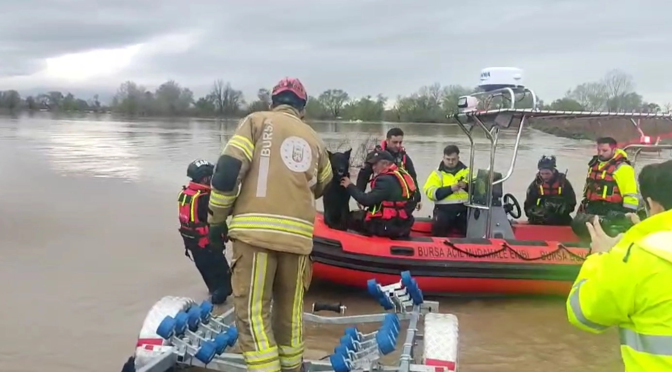 Su baskınlarının etkili olduğu Karacabey ilçesinde mahsur kalan hayvanlar ise Bursa Büyükşehir Belediyesi ve itfaiye ekipleri tarafından kurtarıldı. Gün Mahallesi’nde yükselen su nedeniyle Metin Korkut'a ait bağ evinde 'cesur' ve 'zeytin' isimli iki köpeğin mahsur kaldığı ihbarı üzerine ekipler harekete geçti. Botla açılan ekiplere bir dron da eşlik etti. Dron yardımıyla tespit edilen eve ulaşan ekipler, köpekleri bota alarak güvenli bölgeye getirdi. Karaya ulaşan köpekler, bottan atlayarak sahibine koştu. Kurtarma operasyonu kameraya da saniye saniye yansıdı.