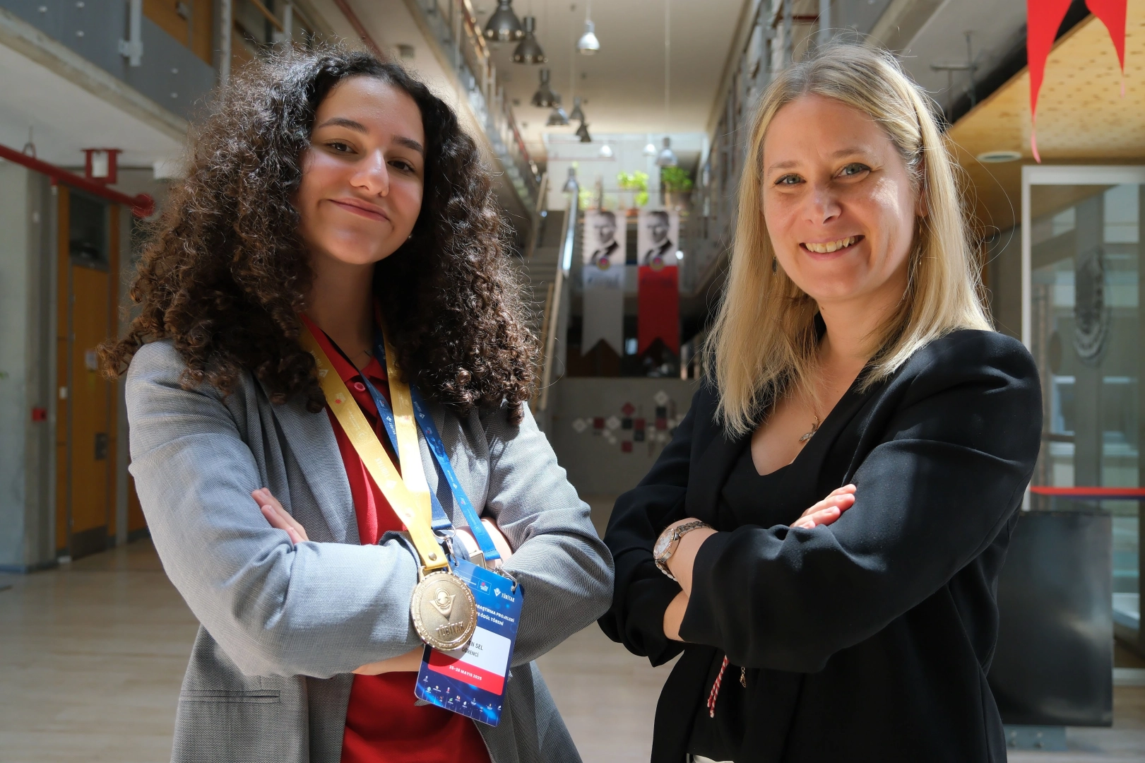 ANKARA, (DHA)- TÜRKİYE Bilimsel ve Teknolojik Araştırma Kurumu (TÜBİTAK) 56'ncı Lise Öğrencileri ve 19'uncu Ortaokul Öğrencileri Araştırma Projeleri Final Yarışması Ödül Töreni Ankara'da gerçekleştirildi. Yarışmada biyoloji dalında TED Ankara Koleji 11’inci sınıf öğrencisi Ceren Sel, beyin tümörü ile bağırsak arasındaki ilişkiyi inceleyen projesiyle Türkiye birincisi seçildi.Ankara Ticaret Odası (ATO) Congresium'da düzenlenen ödül törenine, Sanayi ve Teknoloji Bakanı Mehmet Fatih Kacır ile TÜBİTAK Başkanı Prof. Dr. Orhan Aydın, öğretmenler ve öğrenciler katıldı. Yarışmada biyoloji dalında TED Ankara Koleji 11’inci sınıf öğrencisi Ceren Sel, beyin tümörü ile bağırsak arasındaki ilişkiyi inceleyen projesiyle Türkiye birincisi seçildi. Ödülünü Sanayi ve Teknoloji Bakanı Mehmet Fatih Kacır'ın elinden alan Ceren Sel, biyoloji dalında birincilik ödülünü kazanan projesi hakkında şunları söyledi; “Günümüzde merkezi sinir sistemindeki nörodejeneratif hastalıklarda bağırsak ve beyin arasındaki ilişki oldukça popüler bir konu. Ancak beyin tümörleri ile bu ilişki yeterince ele alınmamış. Bu duruma yeni bir perspektif katmak amacıyla bağırsağımızdaki enterik glio hücrelerinin salgıladığı interferon gama sitokininin glioblastoma hücre proliferasyonunu nasıl etkileyeceğini test etmek için matematiksel bir model geliştirdim. Sonucunda da enterik glio hücrelerinin salgısının yeterli bir inhibisyon sağladığını gördük. İlerde önce bilgisayar mühendisliği okumayı, ardından Biyoinformatik alanında yüksek lisans yaparak, bu alanda araştırmalarıma devam etmeyi hedefliyorum.”Bilim dünyasında kendisine ilham veren birçok bilim insanı olduğunu belirten Ceren Sel, bunlar içinde bir kişinin kendisi için çok özel bir konumda olduğunu ifade ederek, “Prof. Dr. Aziz Sancar bana çok ilham veriyor. Ülkesi için umut olmuş biri. Çok zor hayat koşullarına rağmen elde ettiği başarılar beni çok motive ediyor. Nobel ödülü almış bir bilim insanı. Ödülünü Atatürk’e ithaf etmesi beni ayrıca çok gururlandırıyor ve teşvik ediyor. Bir gün ben de Atatürk’e ödüllerimi ve başarılarımı ithaf etmek isterim” dedi.Ceren Sel’in rehber öğretmeni Dr. Gonca Esendemir Eskin ise, “Biyoloji dalında birincilik kazanan Ceren Sel’in danışmanlığını yaptığım için çok mutluyum. Projesini sunma sürecindeki heyecanına tanık olmak, bilime olan sevgisini somutlaştırmasında ona yol göstermek benim için büyük bir ayrıcalık oldu” diye konuştu.
