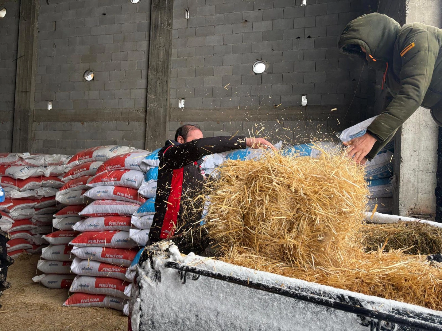 Barış YALÇINKAYA/ERZİNCAN, (DHA)-KARS'tan Ankara'ya sevk edilmek üzere yola çıkan ve yoğun kar nedeniyle Erzincan'da mahsur kalan 6 TIR'daki 200 büyükbaşa, Erzincan Tarım ve Orman Müdürlüğü tarafından yem desteği sağlandı.