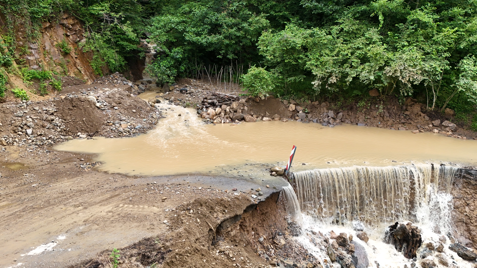Salim SARIKOÇ/ARAKLI, (Trabzon), (DHA)- TRABZON’un Araklı ilçesinde gece etkili olan sağanak, sel, taşkın ve heyelana neden oldu; 5 mahalle yolu ulaşıma kapandı. Tarım arazilerinin zarar gördüğü ilçede, kapalı yolların ulaşıma açılması için çalışma başlatıldı.İlçede etkili olan sağanak hayatı olumsuz etkiledi. Şiddetli yağışın ardından Birlik, Bereketli, Yıldızlı, Kaymaklı ve Ayvadere mahallelerinde taşkın ve toprak kayması meydana geldi. Yamaçtan kopan toprak ve taş yığınları ile taşan derelerdeki su mahalle yollarını ulaşıma kapattı. Taş sürüklenmeleri nedeniyle yollarda hasar oluşurken, bazı tarım arazilerinin zarar gördüğü bölgede de belediye ekipleri, iş makineleriyle çalışma başlattı.'MENFEZ YA DA KÖPRÜ YAPILMALI'Birlik Mahallesi Muhtarı Bahattin Kerez, "Etkili olan şiddetli yağmurdan dolayı mahallemizin yolu kapandı. İlçe belediyemiz müdahale etti, tehlikeli olur diye akşam saatlerinde yolu açmadık. Geçici olarak şu anlık yolu açtık. Yetkililerden menfez ya da köprü yapılmasını istiyoruz. AFAD menfez yapacağını söylemişti. Henüz bir dönüş olmadı. Bölgemizde sürekli yağmur yağıyor. Aynı yerde aynı sıkıntıyı devamlı yaşıyoruz. Mahalleleri birbirine bağlayan bu yolun yapılmasını rica ediyoruz" dedi.Araklı Belediyesi ve Karayolları ekipleri, sabah saatlerinden itibaren başladıkları temizlik ve yol açma çalışmalarını sürdürüyor. (DHA)