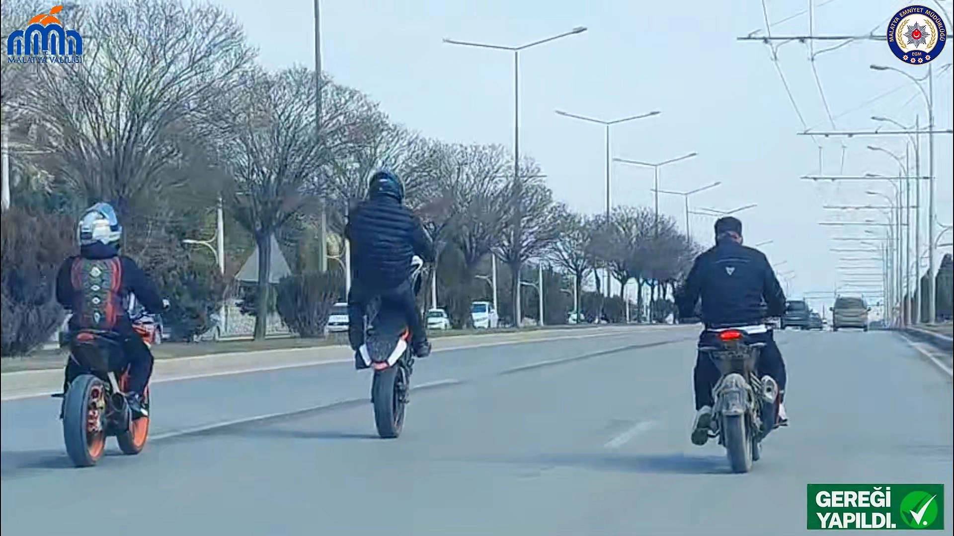 MALATYA, (DHA)- MALATYA'da trafik güvenliğini tehlikeye sokarak akrobatik hareketler yapan motosikletli grubun sürücü belgelerine el konulurken, motosikletler trafikten men edildi.