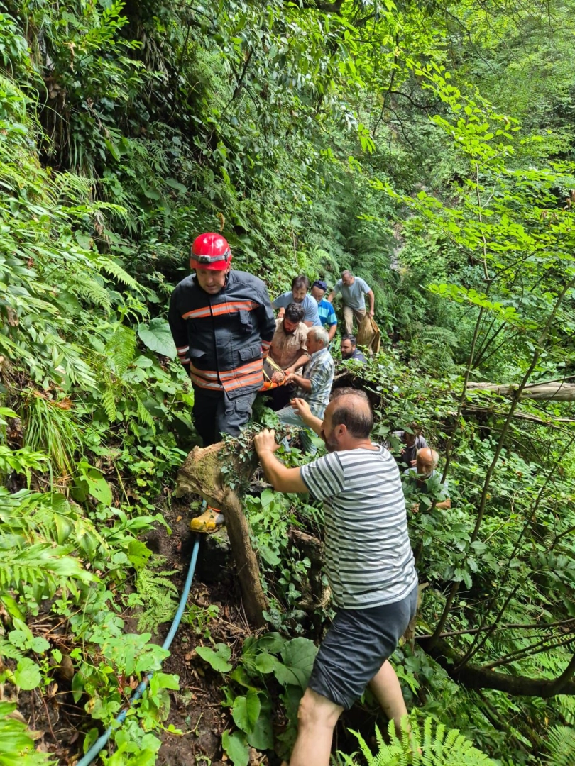 Salim SARIKOÇ/ÇARŞIBAŞI (Trabzon), (DHA)- TRABZON’un Çarşıbaşı ilçesinde dengesini kaybedip uçuruma yuvarlanan ve yaralı olarak mahsur kalan Şaziye Genç (80), itfaiye ekipleri tarafından sedye ile kurtarıldı.İlçeye bağlı Fener Mahallesi'nde yaşayan Şaziye Genç, dün akşam saatlerinde sarp arazideki patika yoldan yürürken dengesini kaybedince, 100 metrelik uçuruma yuvarlandı. Kadının, yaralanarak mahsur kaldığını fark eden çevredekilerin ihbarıyla bölgeye itfaiye ve sağlık ekipleri sevk edildi. Halatla uçuruma inen ekipler, ilk müdahalede bulundukları Şaziye Genç’i koydukları sedye ile yola çıkardı. Burada hazır bekletilen ambulansla alınan kadın, hastaneye kaldırıldı. Genç'in hayati tehlikesinin bulunmadığı belirtildi. (DHA)