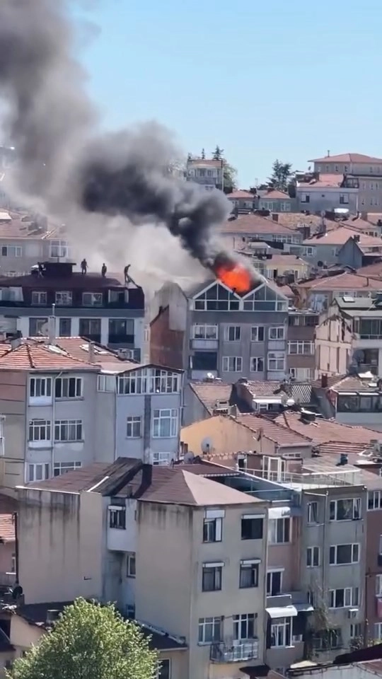 Üsküdar'da 5 katlı binanın çatısı alev alev yandı