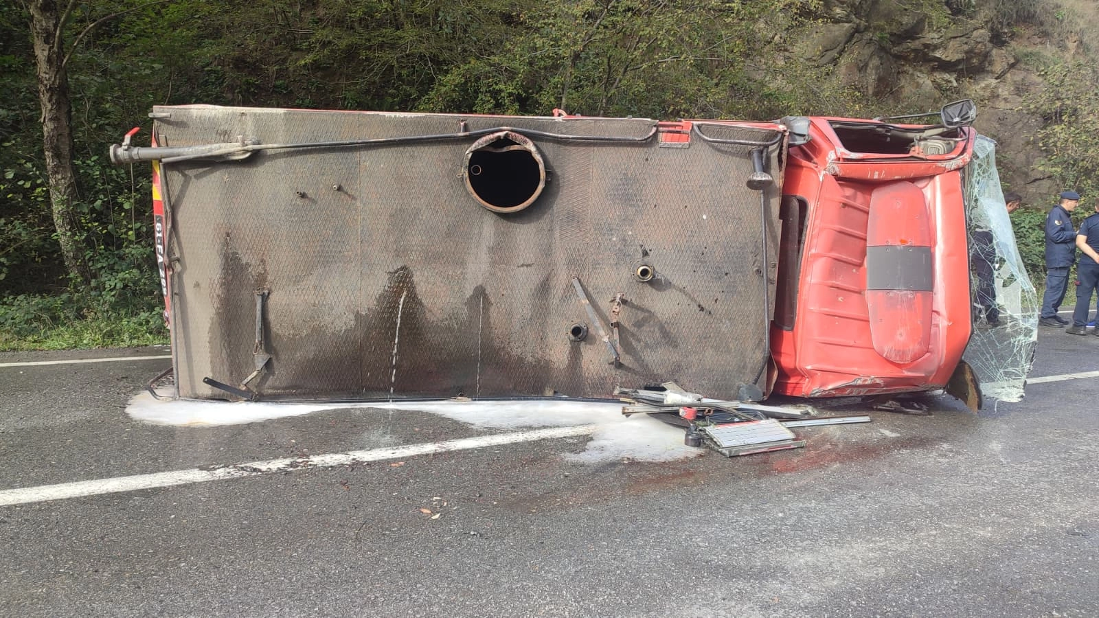 Salim SARIKOÇ/ARAKLI (Trabzon), (DHA)- TRABZON’un Araklı ilçesinde yangına müdahaleden dönen itfaiye aracının devrildiği kazada 2 personel yaralandı.