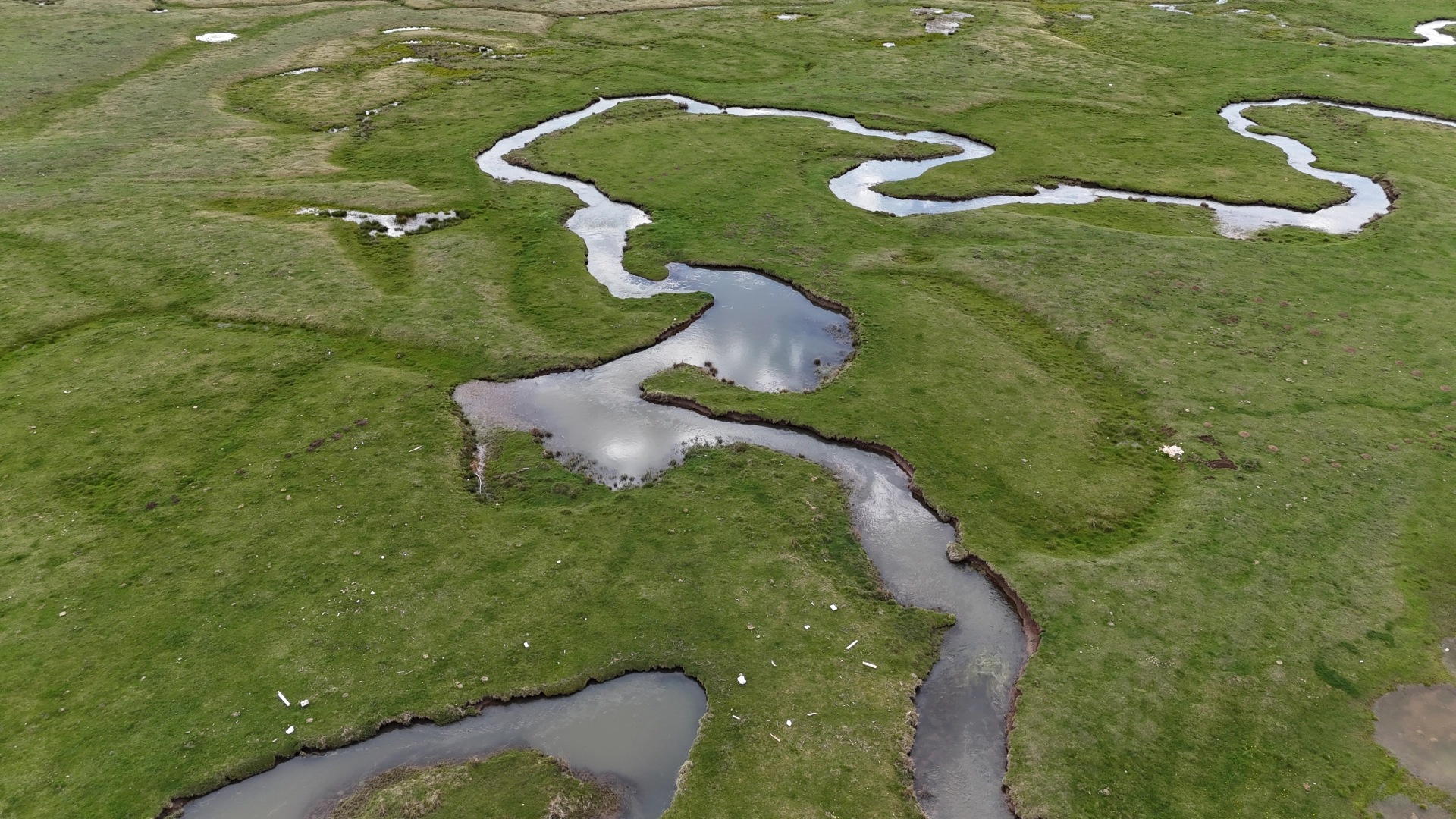 Murat KÜÇÜK- Mutlu YUCA/BOLU, (DHA)- BOLU’da Köroğlu Dağları'nın eteklerinde bulunan yüzlerce dönüm meraların bulunduğu Sarıalan Yaylası'nda eriyen kar suları ve yağmurla birlikte suyla dolarak yeşilliklerin arasından süzülen menderesler eşsiz manzara oluşturdu.Bolu’nun doğal güzellikleriyle ünlü çam ağaçlarıyla çevrili Sarıalan Yaylası’ndaki menderesler kar sularının erimesi ve yağan yağmurlarla birlikte sularla doldu. Köroğlu Dağları’nın eteklerinde yer alan ve yüzlerce dönümlük düz yeşil alanlar ve meralardaki menderesler yaylanın manzarasına renk kattı. Rengarenk çiçeklerle kaplı yaylanın içerisindeki yeşil alanların arasından süzülen suyla kaplı mendereslerin oluşturduğu manzara dronla görüntülendi. (DHA)