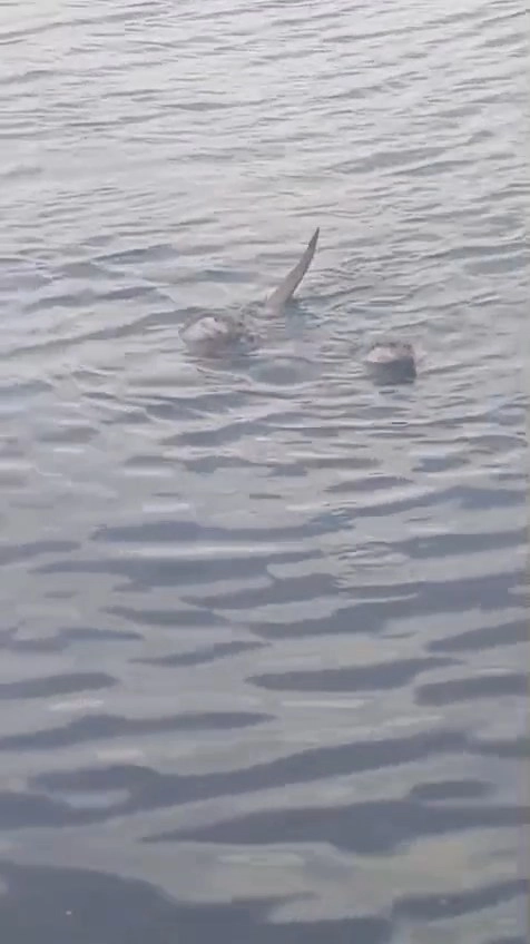 Ereğli sahil bandında gezenlerin dikkatini denizde oynayan su samurları çekti. Cep telefonu ile görüntülenen su samuru ailesi, kısa süre su yüzeyinde oynadıktan sonra gözden kayboldu.