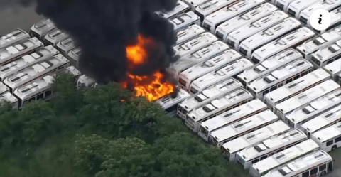 ABD, (DHA) - ABD'nin Philadelphia şehrindeki bir garajda 40 hurda otobüsün yandığı bildirildi.ABD'nin Pensilvanya eyaletindeki Philadelphia şehrinde Ulaştırma Bakanlığı’na ait bir garajda otobüslerin alev almasıyla yangın çıktı. Yangının önceki gün çıktığı ve yan yana duran otobüsler arasında kısa sürede yayıldığı kaydedildi. Yangının söndürülmesinin yaklaşık 2 saat sürdüğü ve 15'i elektrikli olmak üzere 40'a yakın otobüsün kullanılmaz hale geldiği aktarıldı.Yetkililer, yangının çıkış nedeniyle ilgili inceleme başlatıldığını duyurdu.