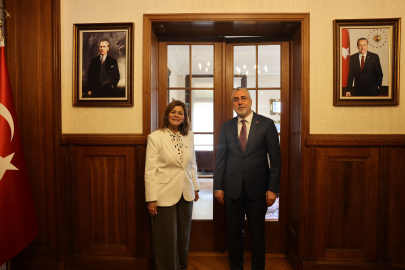 İSVİÇRE, (DHA) - ÇALIŞMA ve Sosyal Güvenlik Bakanı Vedat Işıkhan, 113’üncü Uluslararası Çalışma Konferansı'na katılmak üzere gittiği Cenevre'de Suriye Sosyal İşler ve Çalışma Bakanı Hind Kabawad ile bir araya geldi.Çalışma ve Sosyal Güvenlik Bakanı Vedat Işıkhan, Uluslararası Çalışma Örgütü (ILO) tarafından düzenlenen 113'üncü Uluslararası Çalışma Konferansı'na katılmak üzere gittiği İsviçre'nin Cenevre kentinde Suriye Sosyal İşler ve Çalışma Bakanı Hind Kabawad ile görüştü. Bakan Işıkhan, sosyal medya hesabından yaptığı açıklamada, “113’üncü Uluslararası Çalışma Konferansı kapsamında Suriye Geçiş Hükümeti Sosyal İşler ve Çalışma Bakanı Sayın Hind Kabawad ile gerçekleştirdiğimiz ikili görüşmede ülkelerimiz arasında iş birliğini güçlendirmek üzere atabileceğimiz adımları ele aldık. Çalışma hayatını ilgilendiren her konuda tecrübelerimizi paylaşmaya açık olduğumuzu aktardık. Komşumuz ve tarihi derin bağlara sahip olduğumuz Suriye’nin istikrar ve güven ortamını güçlendirmek için kararlı adımlar atmaya devam edeceğiz. Sayın Cumhurbaşkanımızın vizyonu ve liderliği ile Suriye halkının ve mazlum coğrafyaların yanında olmayı sürdüreceğiz” ifadelerini kullandı.